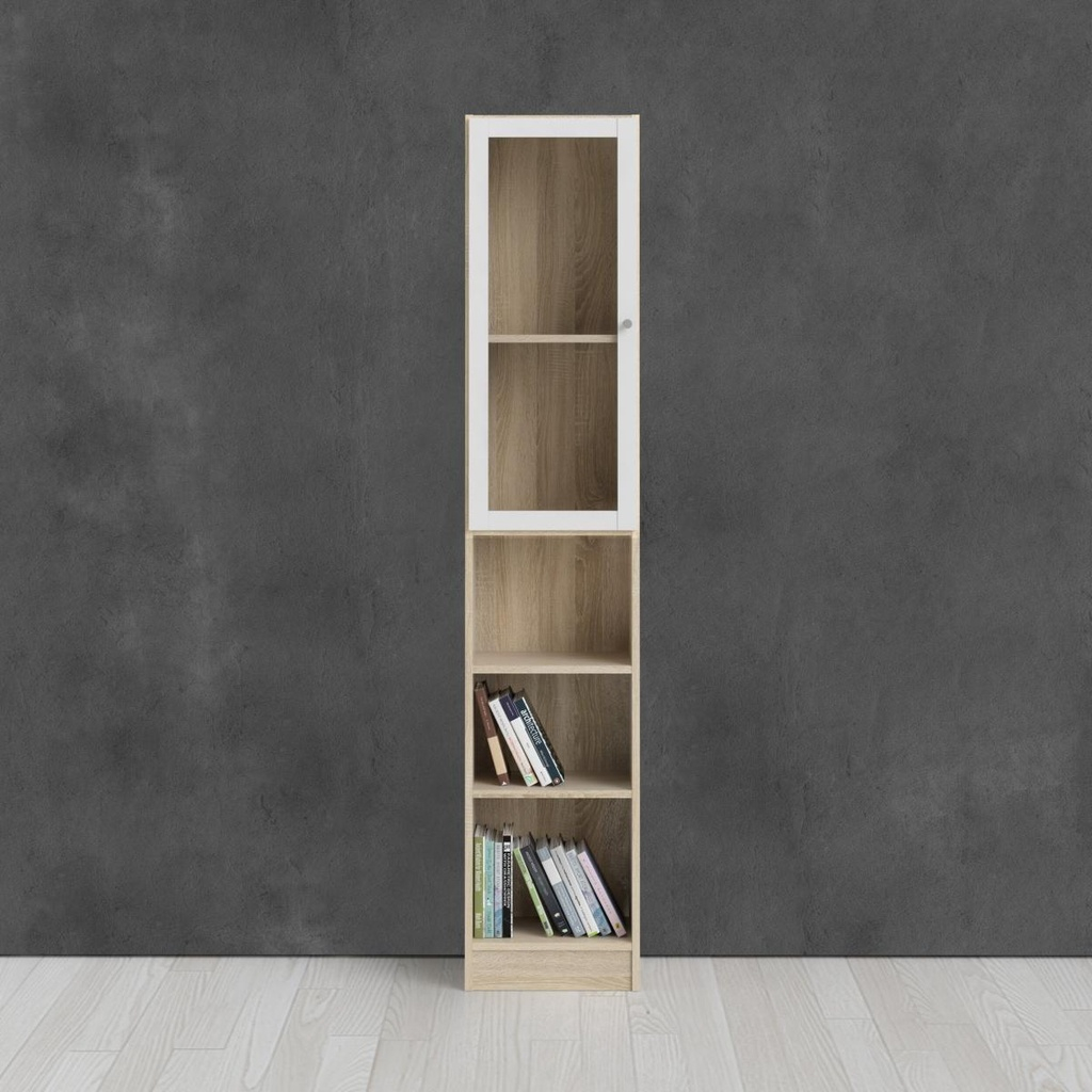 Skříň Bask 40,6 x 28,3 x 203,2 cm, dveře sklo, dub sonoma / bílá
