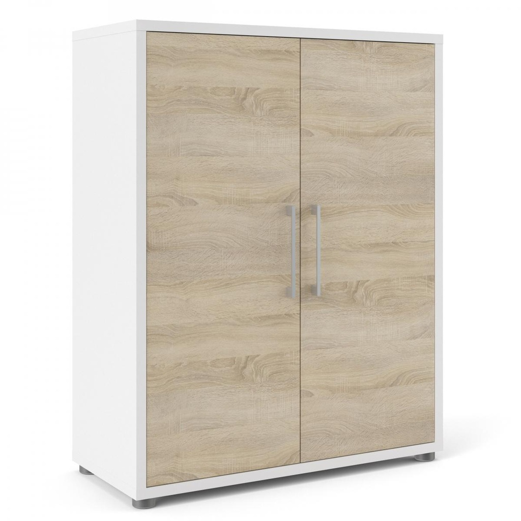 Skříň Modulo 89 x 40 x 113 cm, dveře dřevo, bílá / dub sonoma