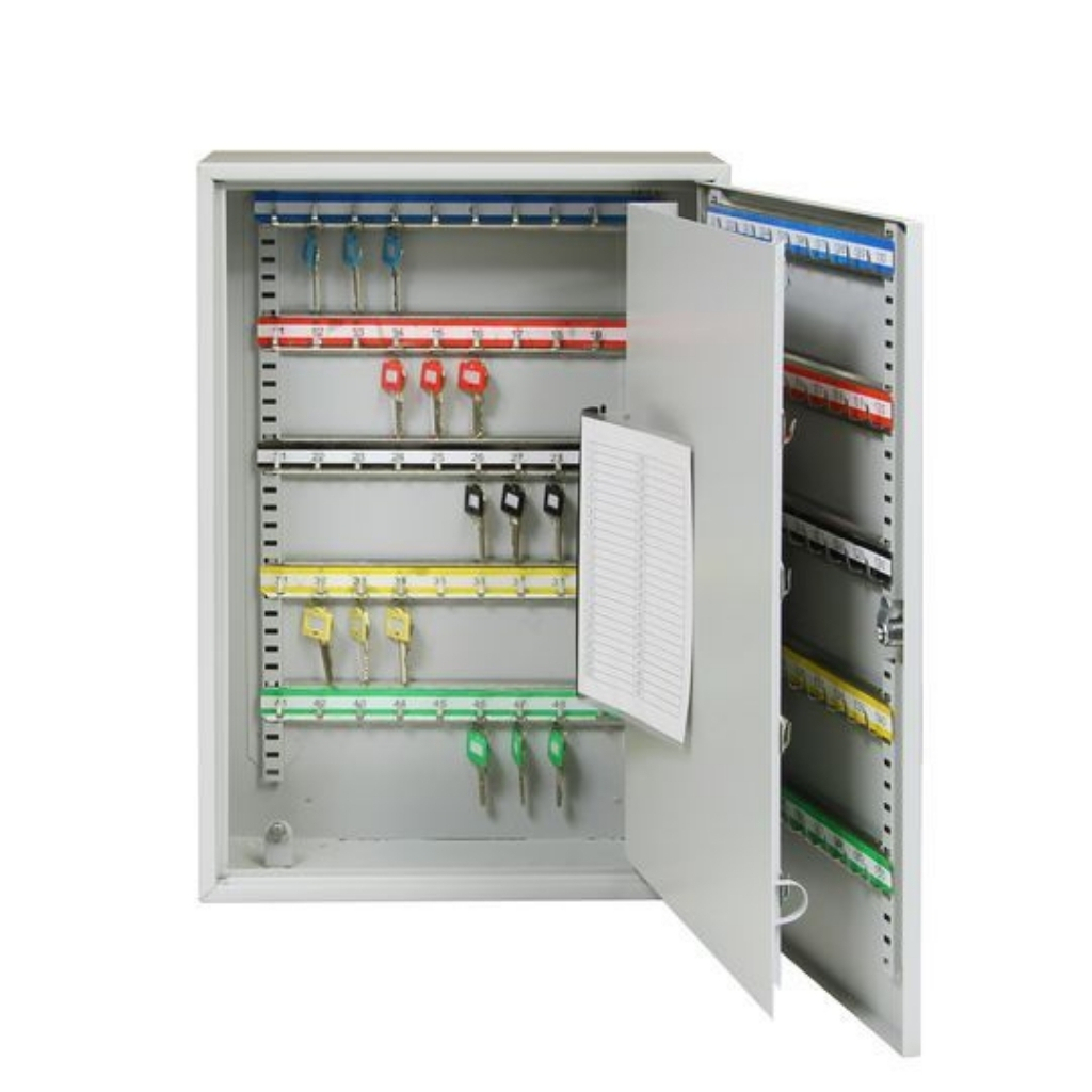 Skříňka slouží k úschově 150 klíčů. Orientaci v klíčích vám usnadní i arch pro seznam klíčů. Součástí balení jsou také barevné jmenovky a kroužky na klíče.