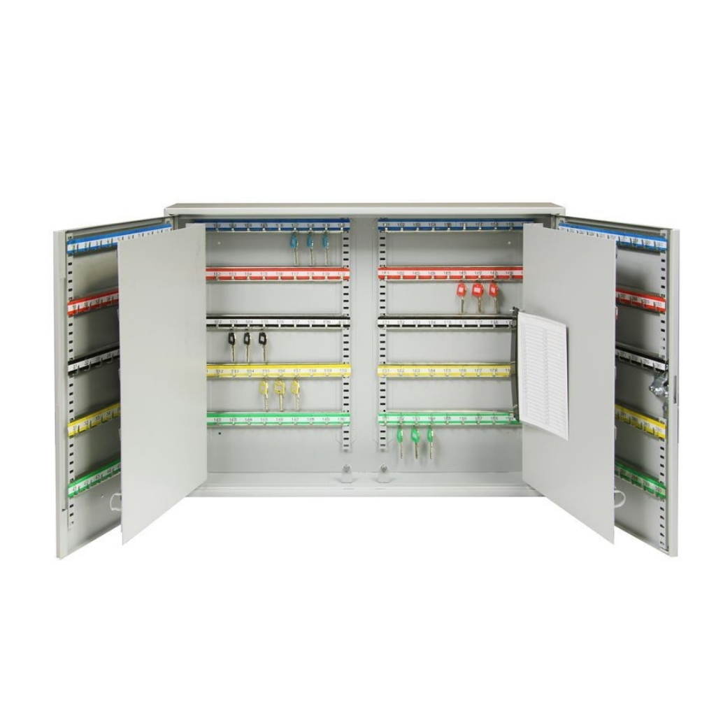 Skříňka slouží k úschově 300 klíčů. Orientaci v klíčích vám usnadní i arch pro seznam klíčů. Součástí balení jsou také barevné jmenovky a kroužky na klíče.