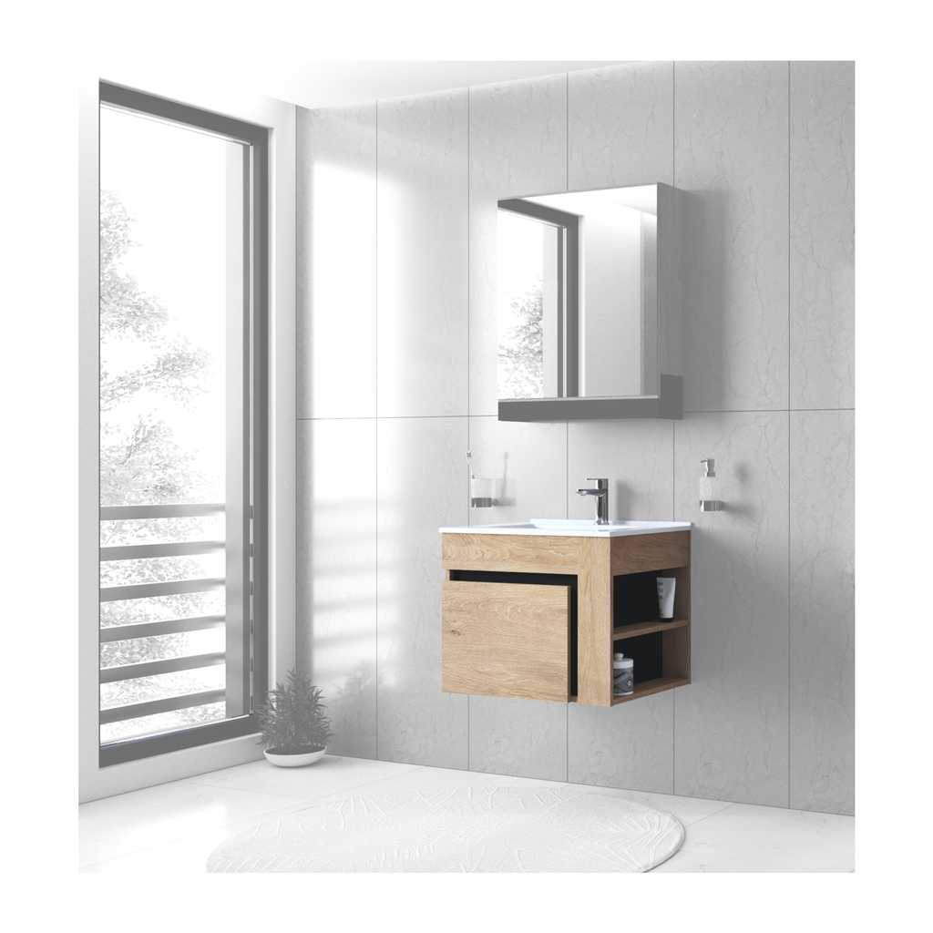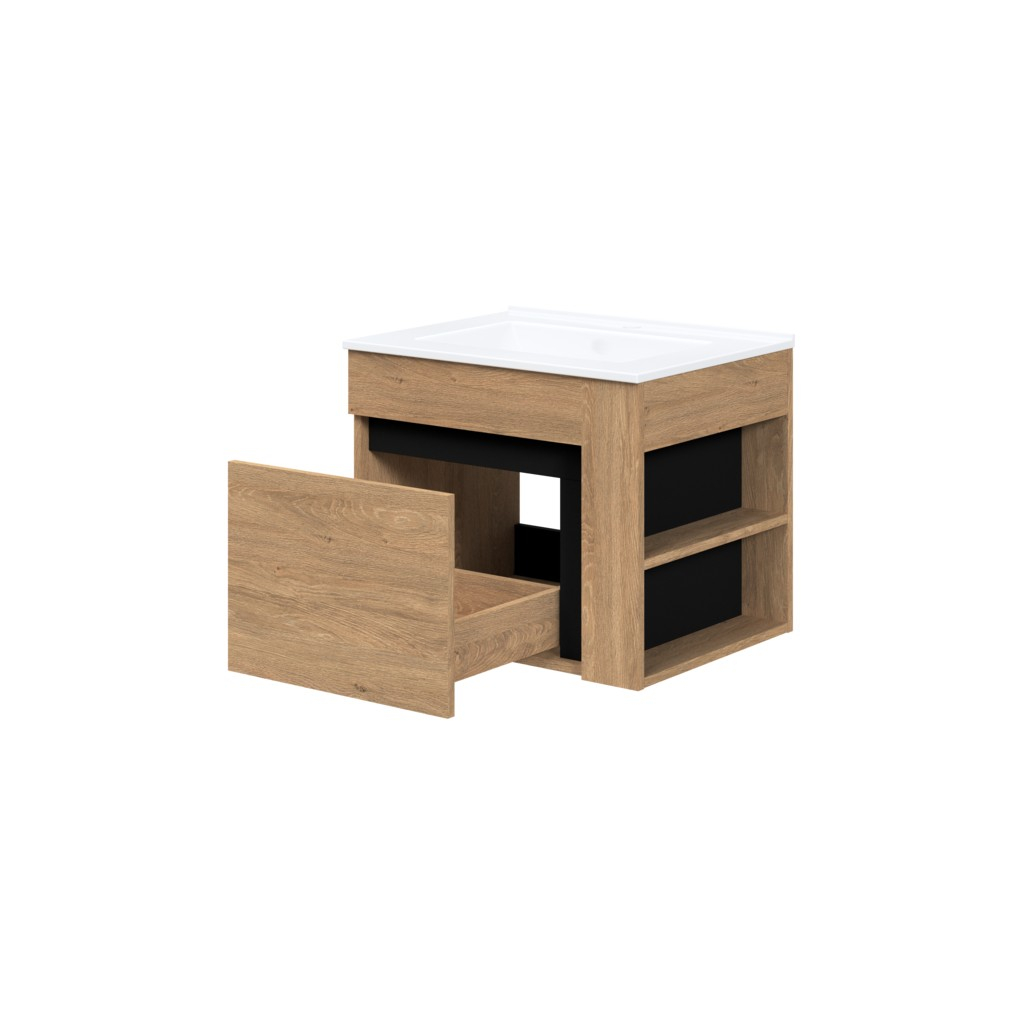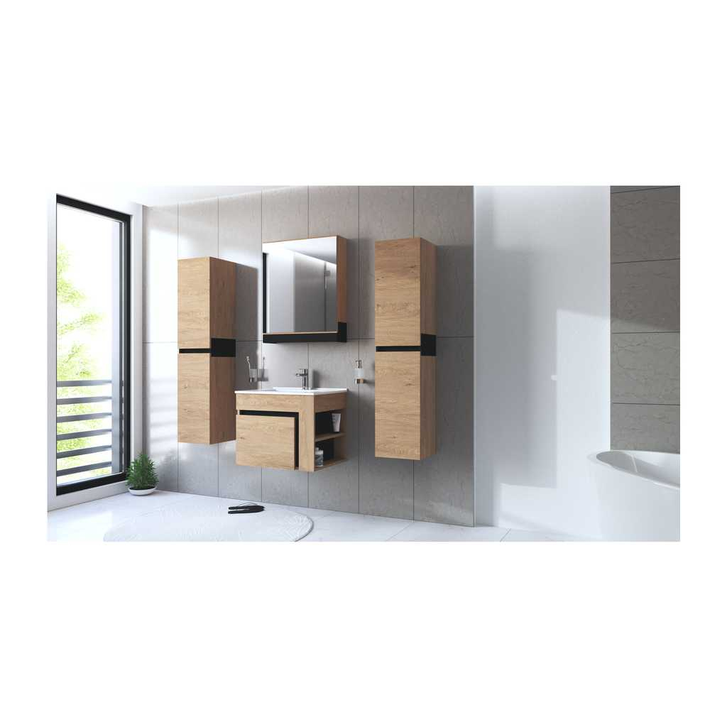 Praktická a pevná skříňka pod umyvadlo Stokes je ideálním řešením pro účelnou organizaci prostoru ve vaší koupelně. Díky svým rozměrům perfektně padne pod většinu umyvadel o šířce 60 cm a nabídne dostatek úložného místa v zásuvce a otevřených policích. Vyrobena z kvalitního dřeva, je navržena tak, aby vydržela každodenní používání a zároveň dodala koupelně přírodní a stylový vzhled.