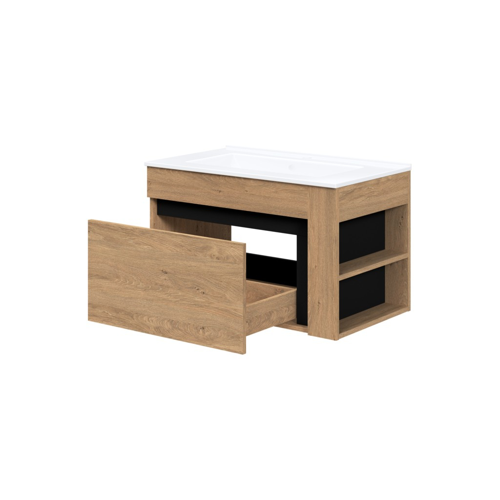 Skříňka pod umyvadlo Stokes je praktickým a stylovým doplňkem do vaší koupelny. Nabízí dostatek úložného prostoru díky jedné velké zásuvce a otevřeným policím na boku, což zajišťuje pořádek a snadný přístup k potřebným věcem. Vyrobena je z kvalitního dřeva, které dodává nábytku pevnost a dlouhou životnost.