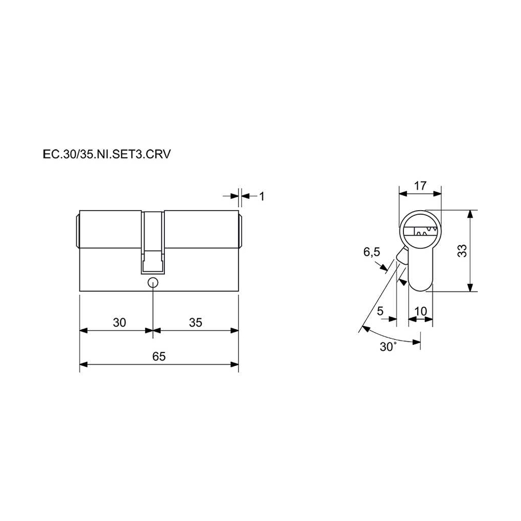 Stavební vložka EC 30/35 – set na společný uzávěr, bílý rozlišovač