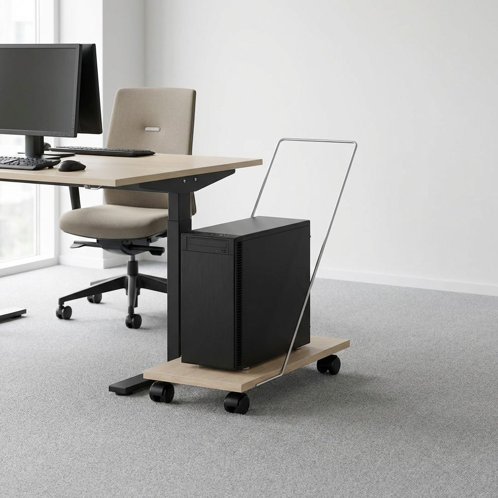 Stojan nabízí prostor 26 x 50 cm pro umístění vašeho počítače. Výhodou stojanu je snadná manipulace, protože je vybaven kolečky a můžete si jej tak pohodlně přesunout. Síla použitých desek je 16 mm.