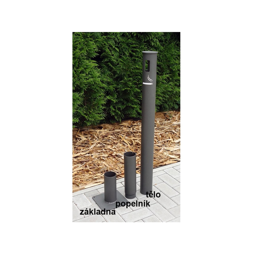 Stojanový popelník Design je skvělým doplňkem do venkovních prostorů, kde se stane nejen praktickým nástrojem, ale díky svému elegantnímu zpracování bude i velmi dobře vypadat. Je vyroben z lakované oceli, která je také velmi odolná například proti vandalismu. Popelník však spolehlivě odolá také nepřízni počasí a silnému větru, a to především díky rozšířené podstavě s možností ukotvení.
