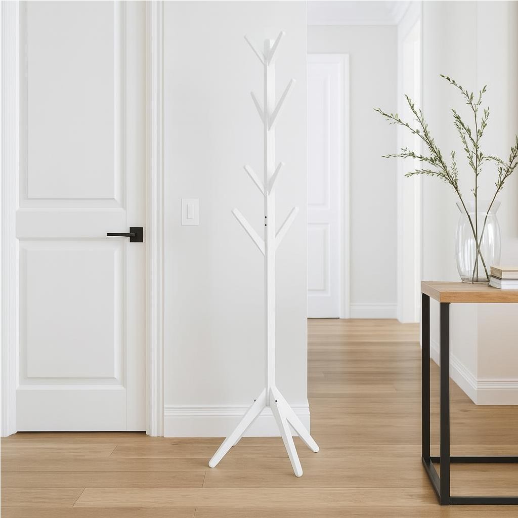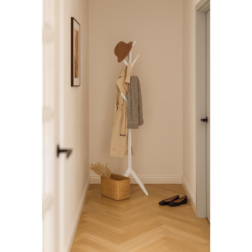 Stojanový věšák Abreus nabízí nejen praktické řešení pro uskladnění oděvů a doplňků, ale zároveň vyniká svým čistým a moderním designem. Díky využití kvalitního dřevěného materiálu je věšák pevný a stabilní, což zajišťuje jeho odolnost a dlouhou životnost.
