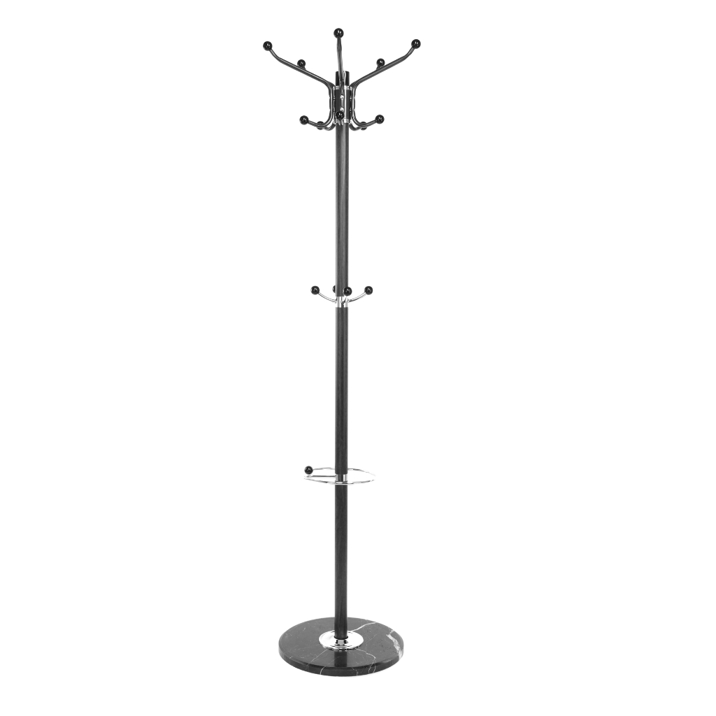 Základnu věšáku tvoří kruh o průměru 37 cm z umělého kamene, který je barevně sladěný se zbytkem konstrukce. Celková výška je 176 cm.