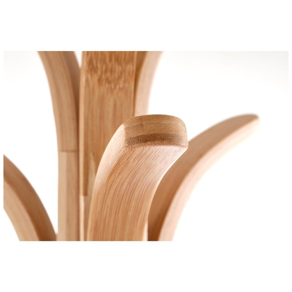 Stojanový věšák Soan 2 se bude díky svému zajímavému vzhledu skvěle vyjímat v jakémkoliv interiéru. Své uplatnění nalezne v domácnosti i ve firemním prostředí v kancelářích. Zajistí pohodlné a praktické zavěšení oděvů, abyste je měli neustále po ruce. Kromě věšáků nabízí i dva odkládací prostory uvnitř konstrukce, kde si můžete odkládat třeba rukavice, klíče nebo jiné potřeby. Pevná konstrukce z bambusového dřeva disponuje 6 háčky na šaty a postará se o jeho dostatečnou stabilitu. Na věšák lze zavěsit šaty až do váhy 6 kg, nosnost jednotlivých polic je do 4 kg.
