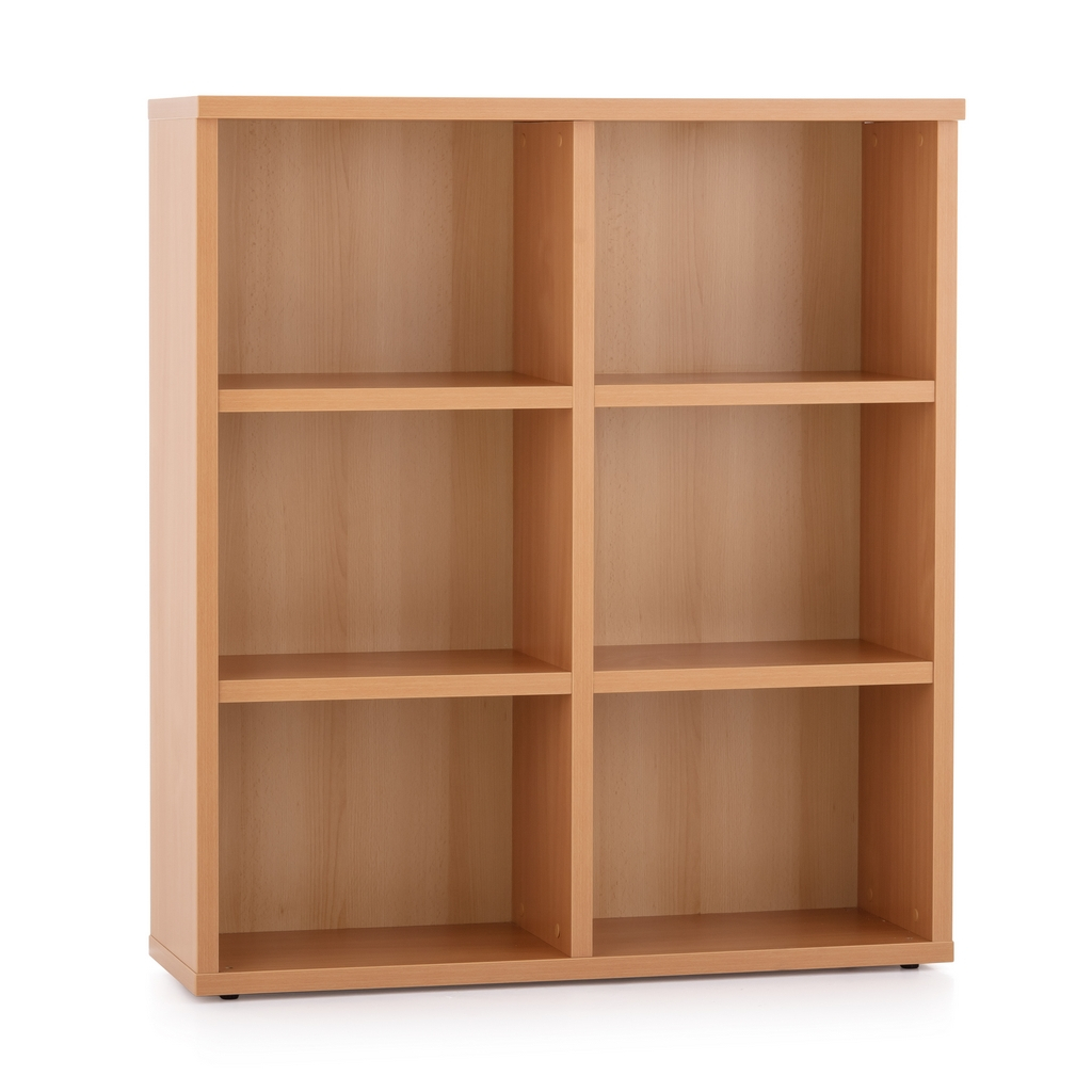 Střední regál Visio disponuje úložnými prostory rozdělenými do 6 stejných oddílů.