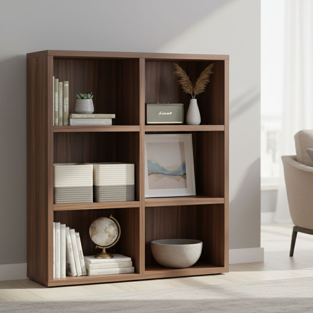 Střední regál Visio disponuje úložnými prostory rozdělenými do 6 stejných oddílů.