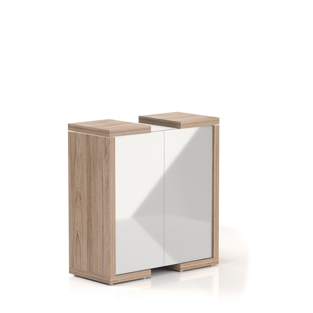 Střední skříň Lineart 111,2 x 50 x 118 cm, jilm světlý / bílá