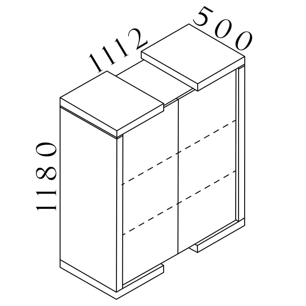 Střední skříň Lineart disponuje dvěma policemi. Při rovnoměrném zatížení unesou až 40 kg. Desky jsou vyrobeny z laminované dřevotřísky a mají sílu 54 mm.