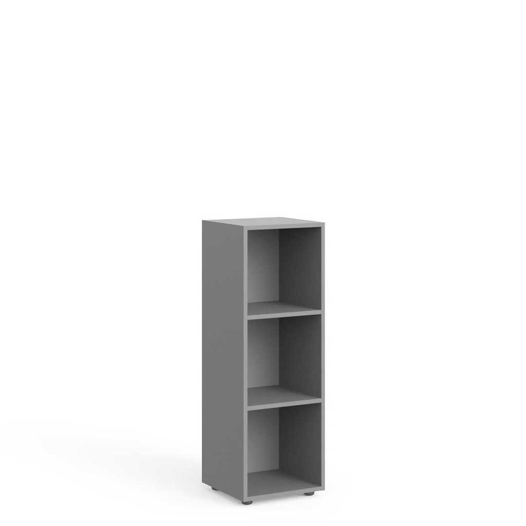 Skříň je dodávána bez dveří. Standardně ji nabízíme s šedým korpusem. Pro sjednocení elegantního vzhledu vaší kanceláře si však můžete objednat obkladovou desku.