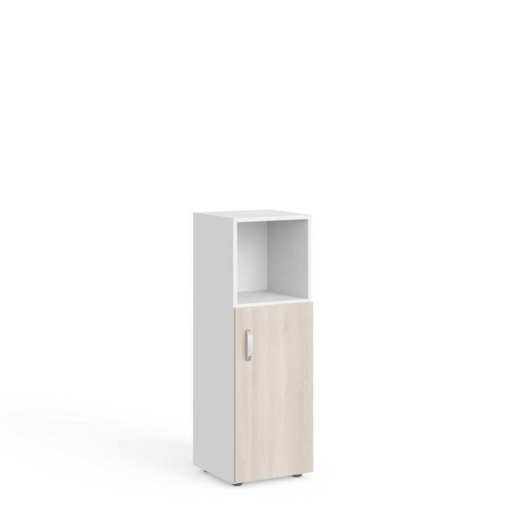 Skříň je dodávána společně se spodními dřevěnými dveřmi, které jsou vybaveny plastovou úchytkou. Horní část skříně je odkrytá a nabízí rychlý přístup. Pro sjednocení elegantního vzhledu vaší kanceláře si můžete objednat obkladovou desku.