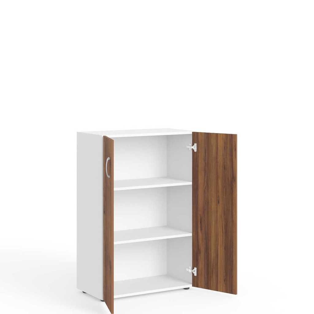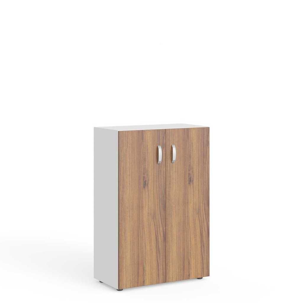 Skříň je dodávána společně s dřevěnými dveřmi, které jsou vybaveny plastovými úchytkami. Pro sjednocení elegantního vzhledu vaší kanceláře si můžete objednat obkladovou desku.