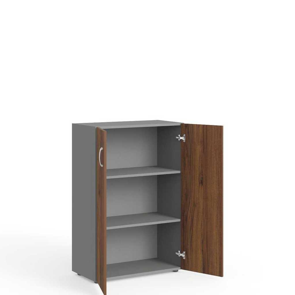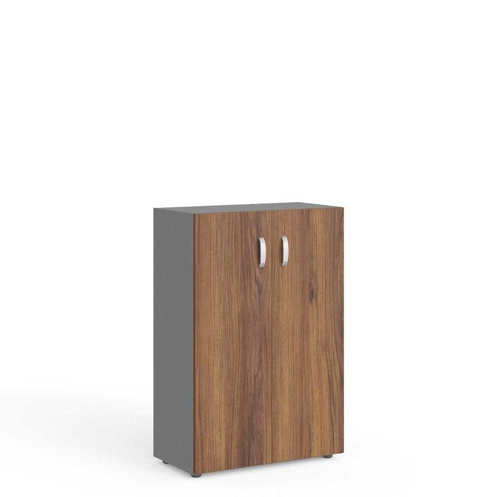Skříň je dodávána společně s dřevěnými dveřmi, které jsou vybaveny plastovými úchytkami. Pro sjednocení elegantního vzhledu vaší kanceláře si můžete objednat obkladovou desku.