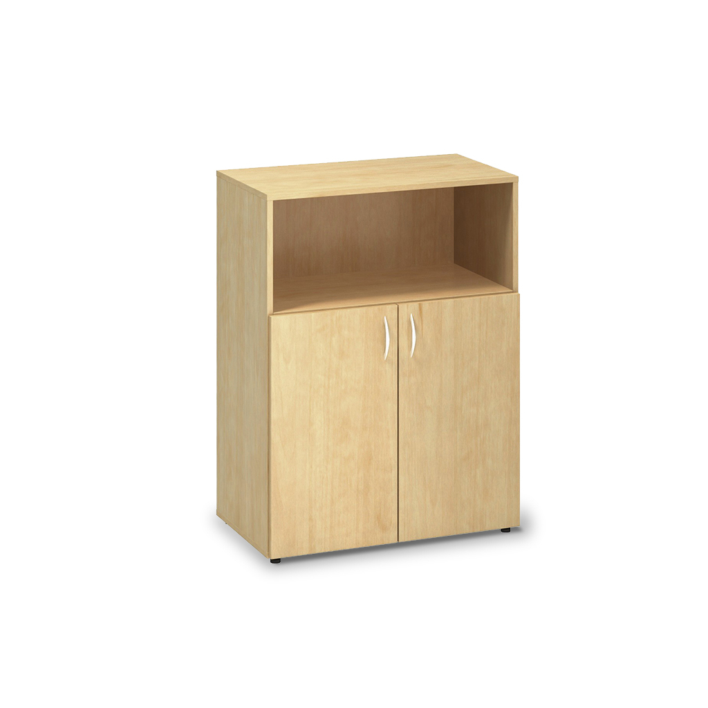 Tento typ skříně dodáváme se spodními dřevěnými dveřmi, které jsou vybaveny kovovými úchytkami. Vytvoří tak rychlý přístup k horní polici.