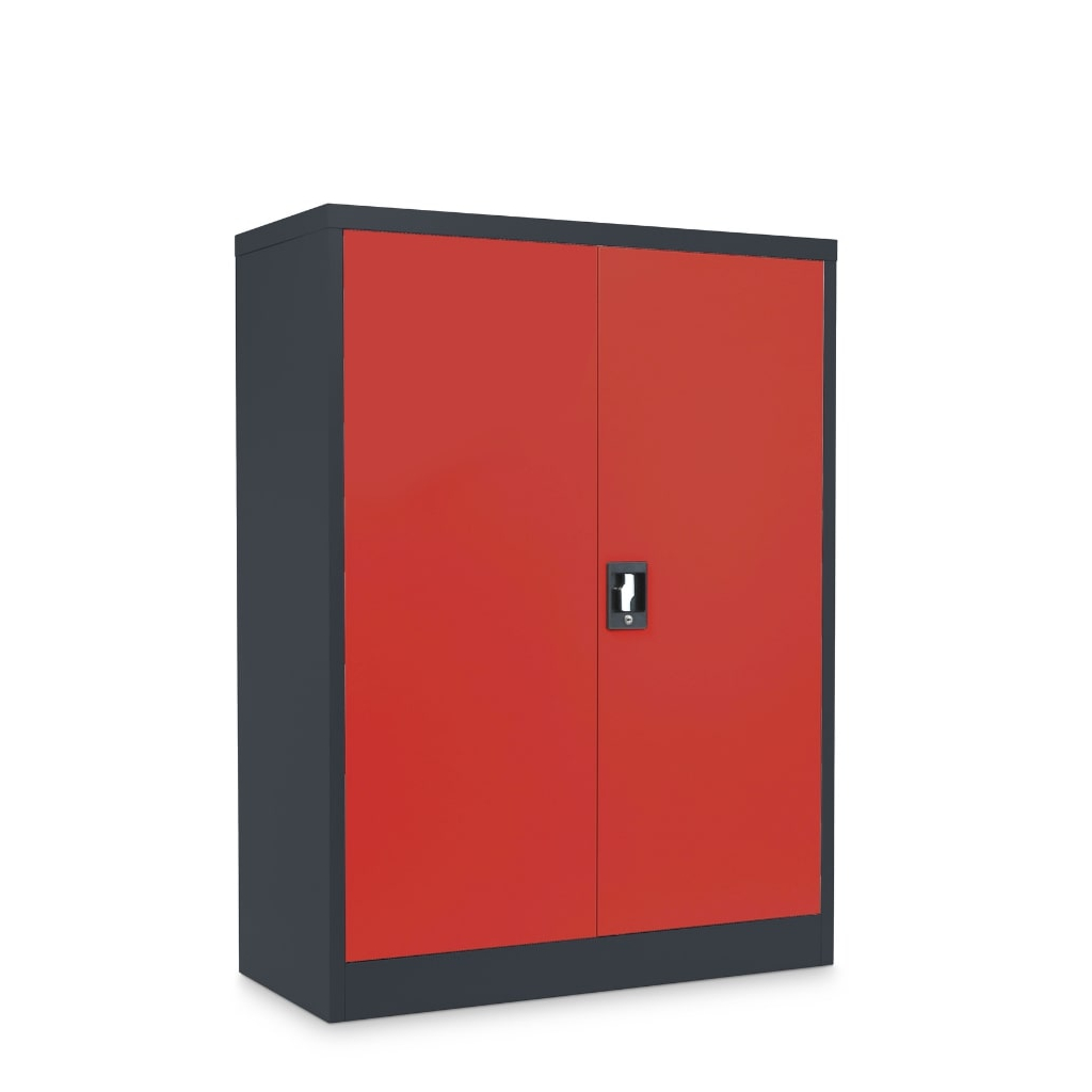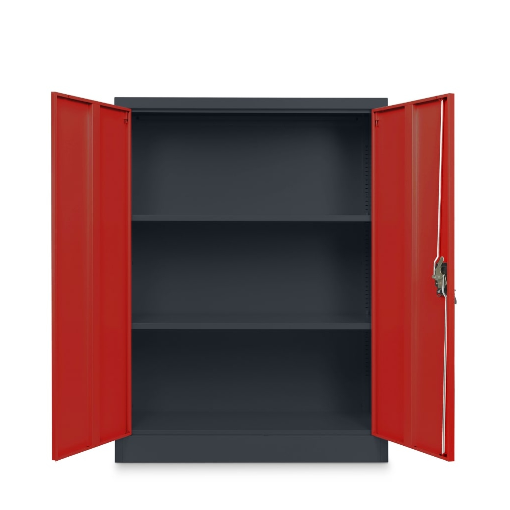 Střední univerzální kovová skříň, 90 x 40 x 120 cm, cylindrický zámek, červená - ral 3000