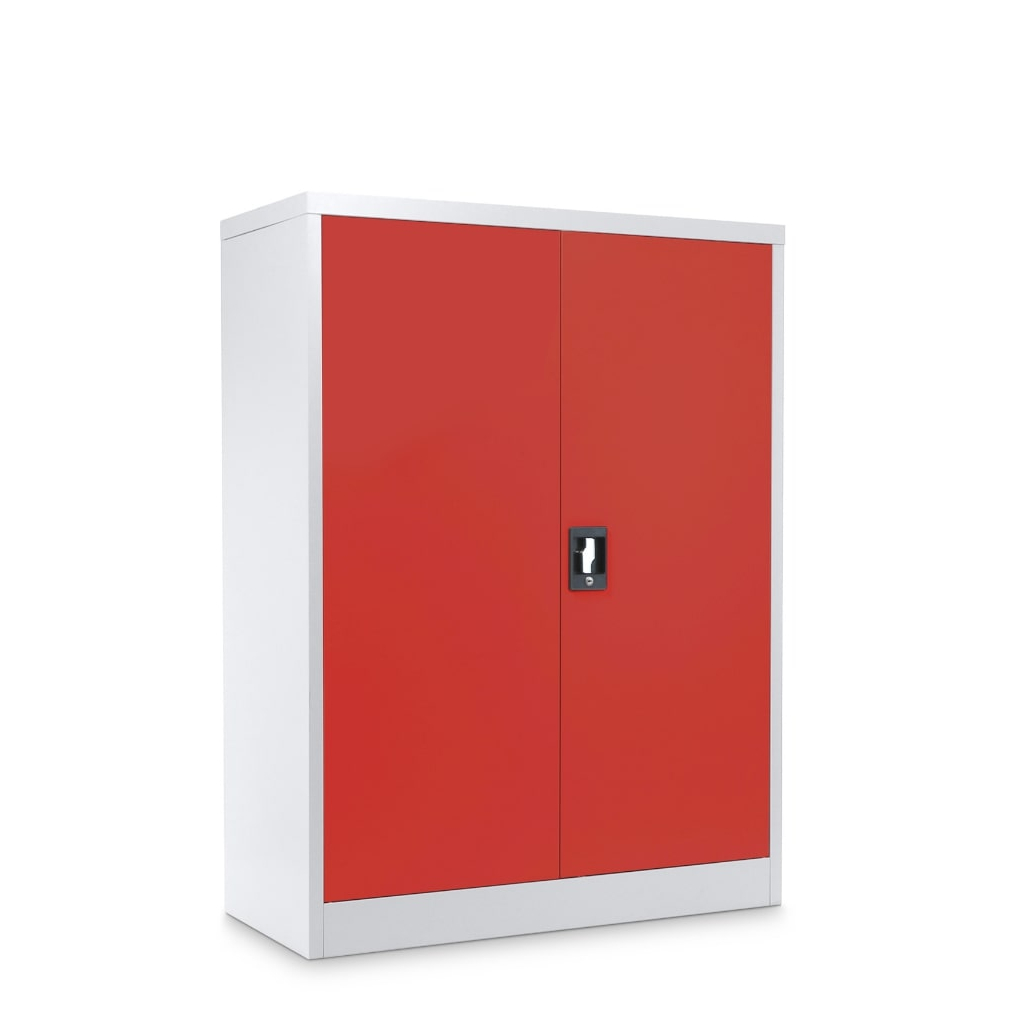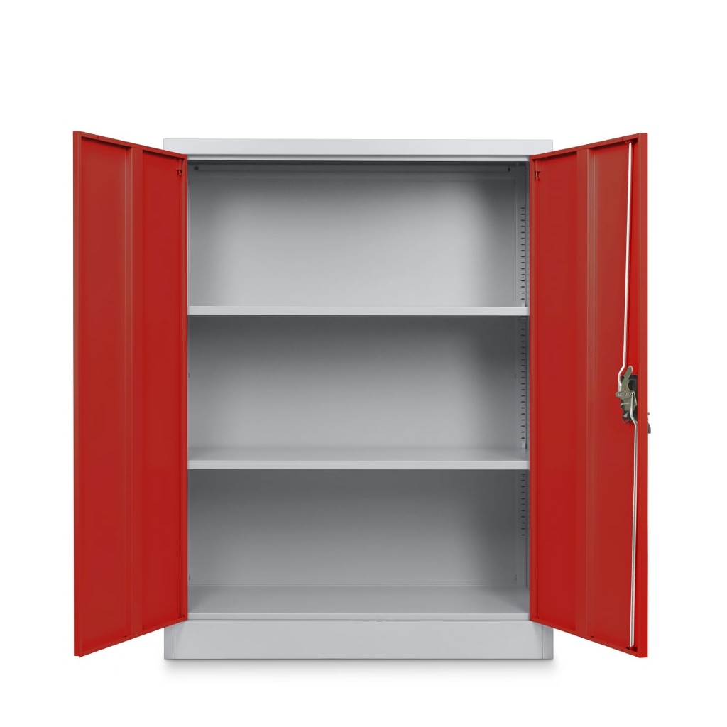 Střední univerzální kovová skříň, 90 x 40 x 120 cm, cylindrický zámek, červená - ral 3000