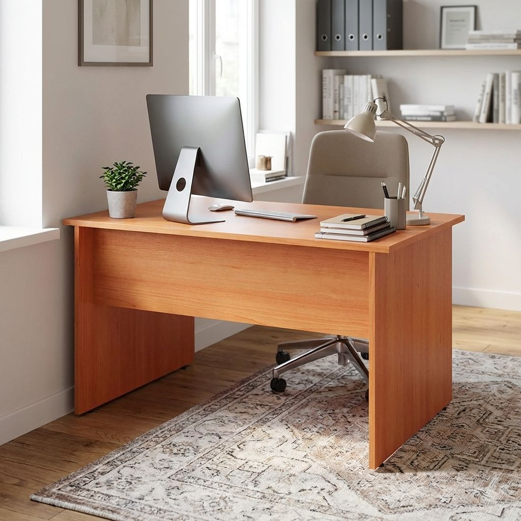 S výškou 76 cm splňuje stůl Impress ergonomické požadavky pro kancelářský nábytek. Stojí na plné dřevěné podnoži z laminované dřevotřísky o tloušťce 16 mm.