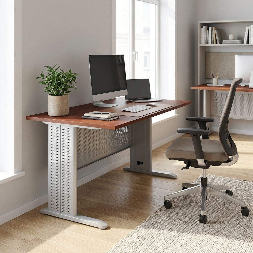 S výškou 73 cm splňuje stůl Impress ergonomické požadavky pro kancelářský nábytek. Stůl je navíc také velmi stabilní, a to díky své kovové podnoži.