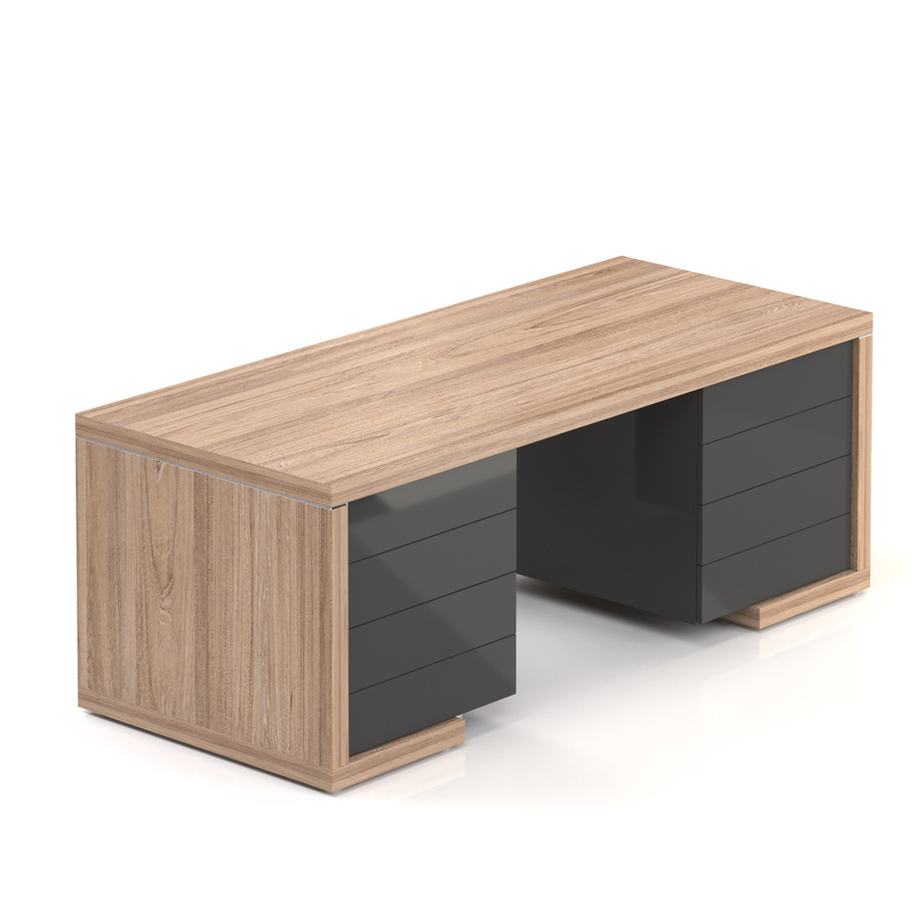 Stůl Lineart 200 x 85 cm + 2x kontejner, jilm světlý / antracit