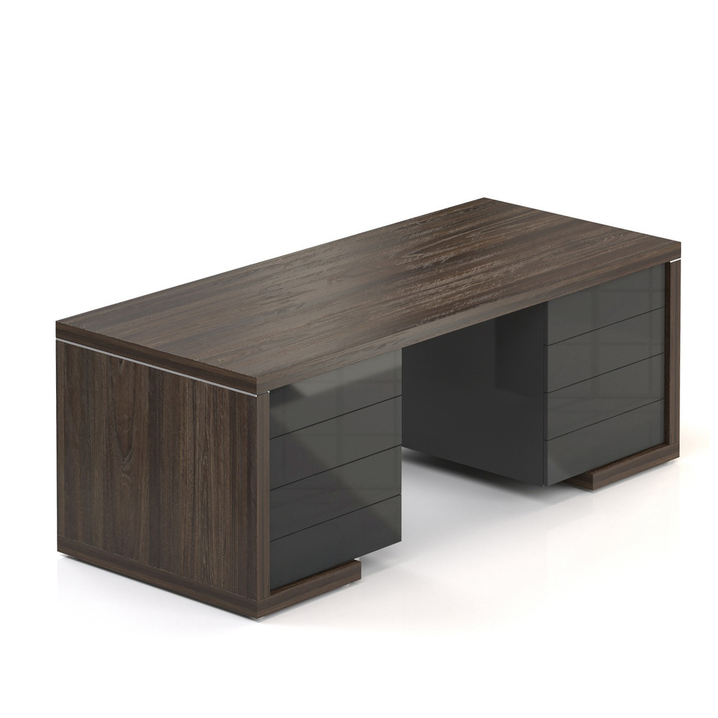Stůl Lineart 200 x 85 cm + 2x kontejner, jilm tmavý / antracit