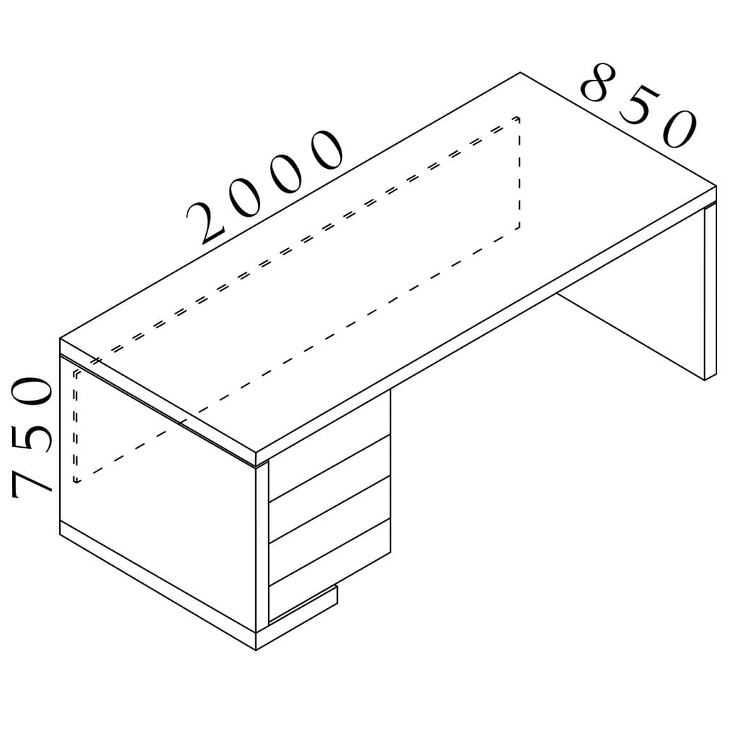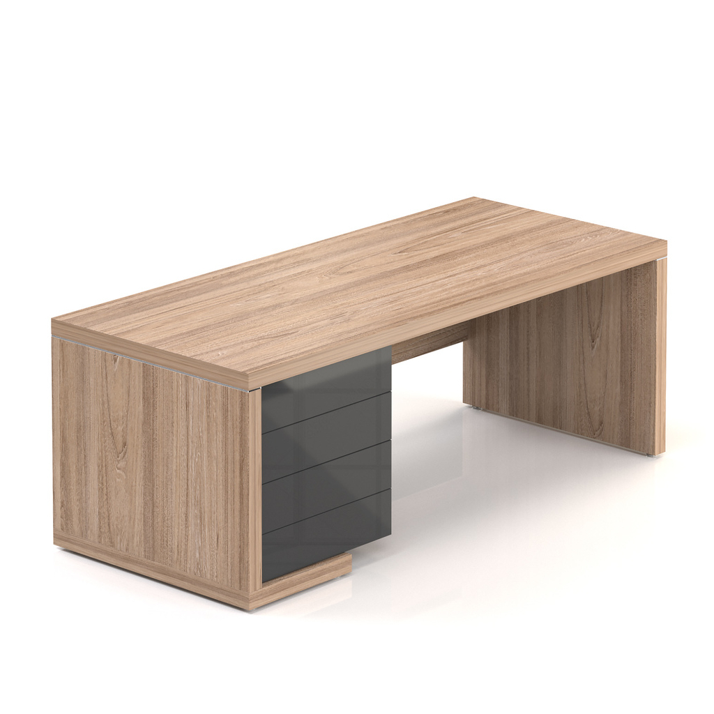 Stůl Lineart 200 x 85 cm + levý kontejner, jilm světlý / antracit