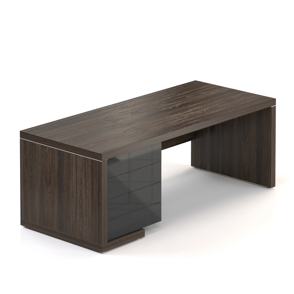 Stůl Lineart 200 x 85 cm + levý kontejner, jilm tmavý / antracit