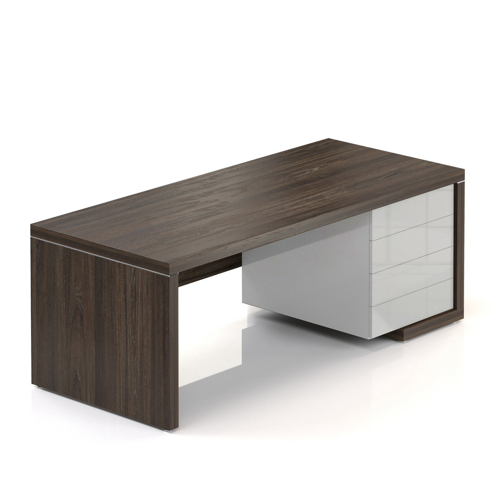 Stůl Lineart 200 x 85 cm + pravý kontejner, jilm tmavý / bílá