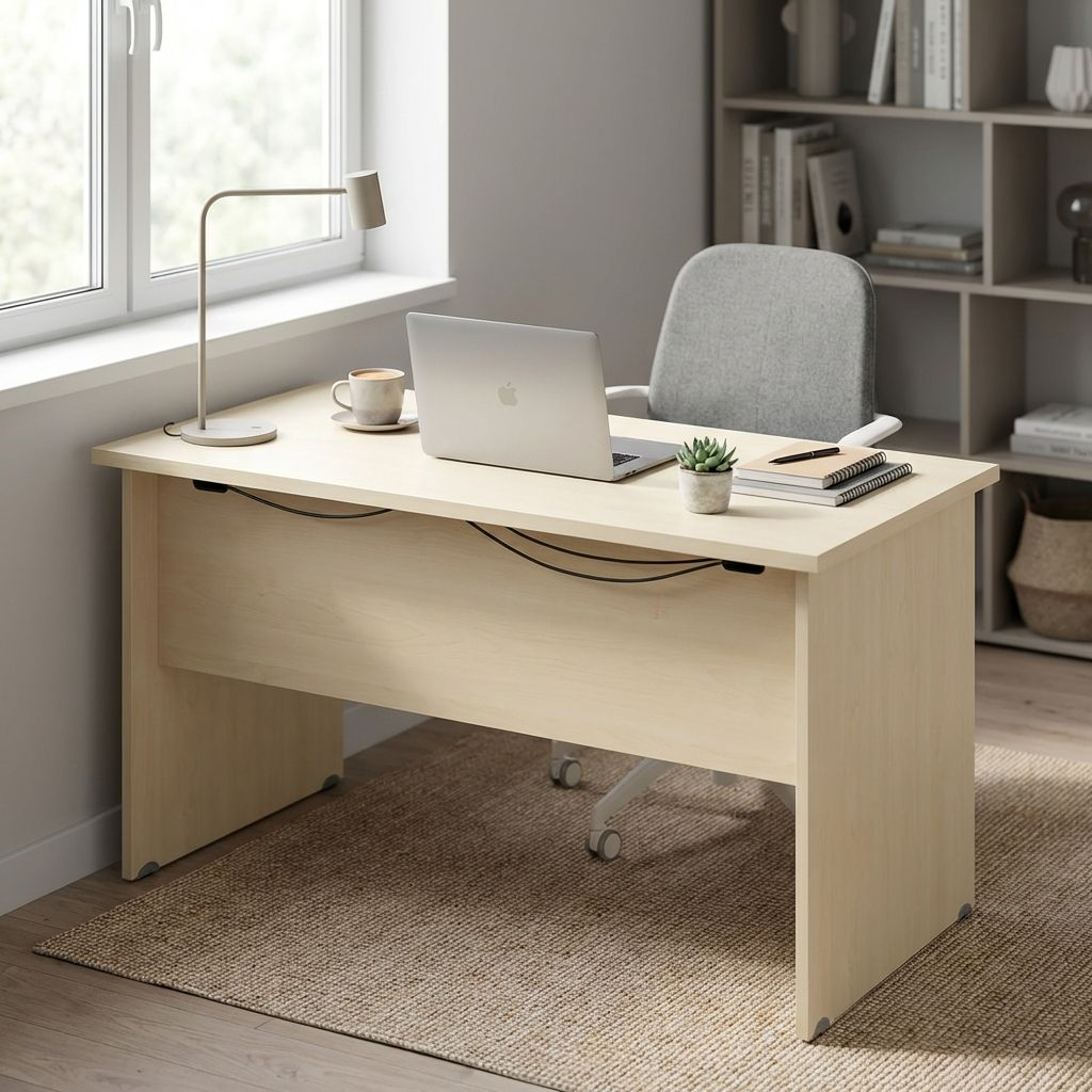 Vrchní deska je vyrobená z laminované dřevotřísky o síle 28 mm. Stůl disponuje mezi svou vrchní a čelní deskou praktickým otvorem, který poslouží pro vyvedení kabeláže.