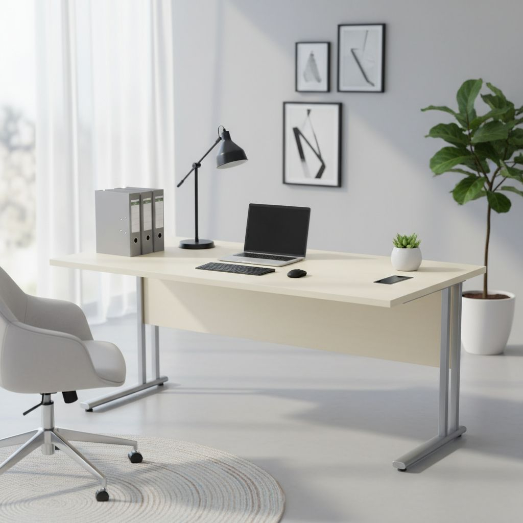 S výškou 76 cm splňuje stůl Visio ergonomické požadavky pro kancelářský nábytek. Stojí na stabilní kovové podnoži.