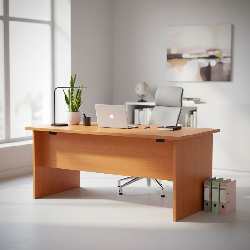 S výškou 76 cm splňuje stůl Visio ergonomické požadavky pro kancelářský nábytek. Stojí na plné dřevěné podnoži z laminované dřevotřísky o tloušťce 18 mm.