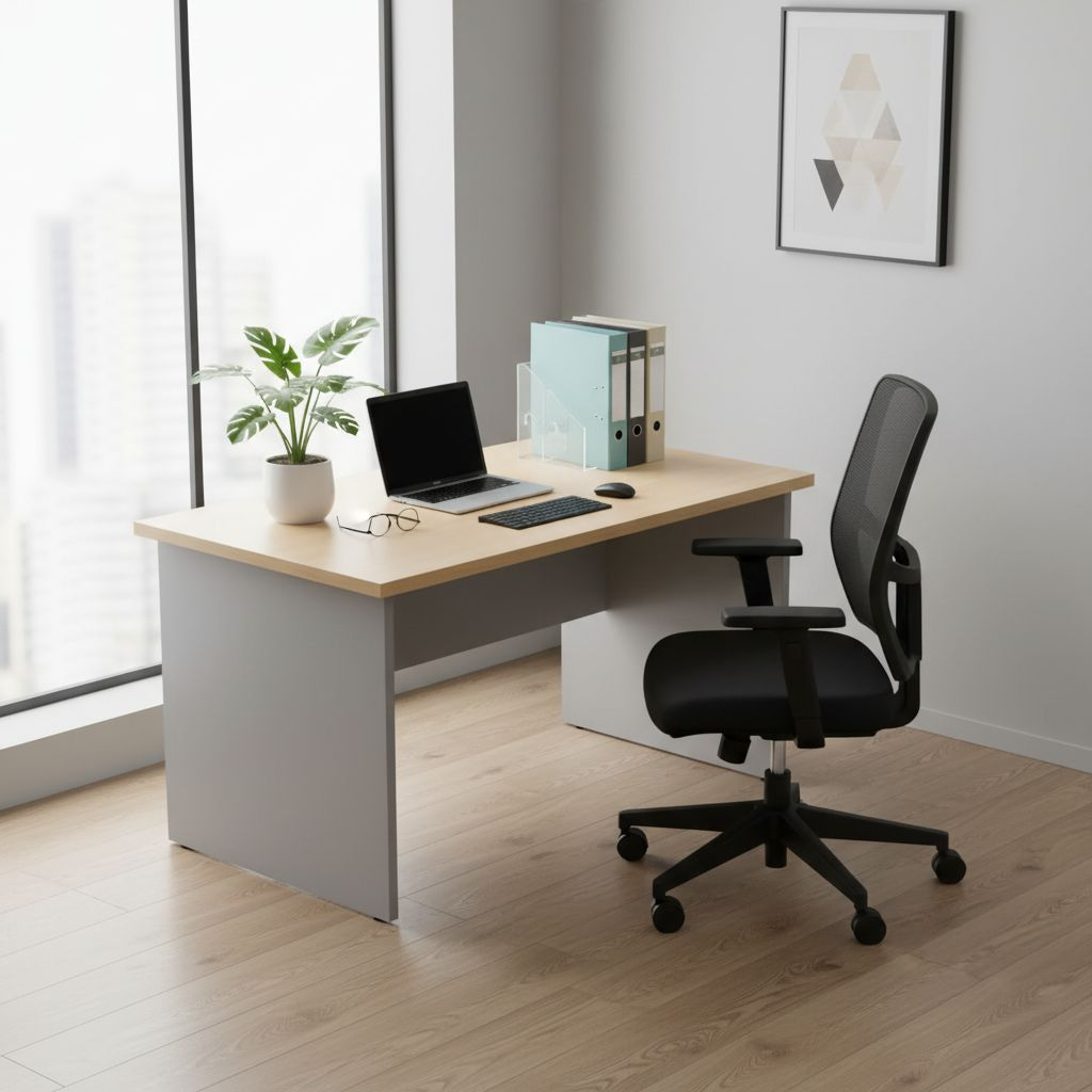 Desky stolů Visio LUX nabízíme ve dvou dezénech, které vám zaručí jednotný vzhled vaší kanceláře. Korpus je v elegantní šedé barvě.