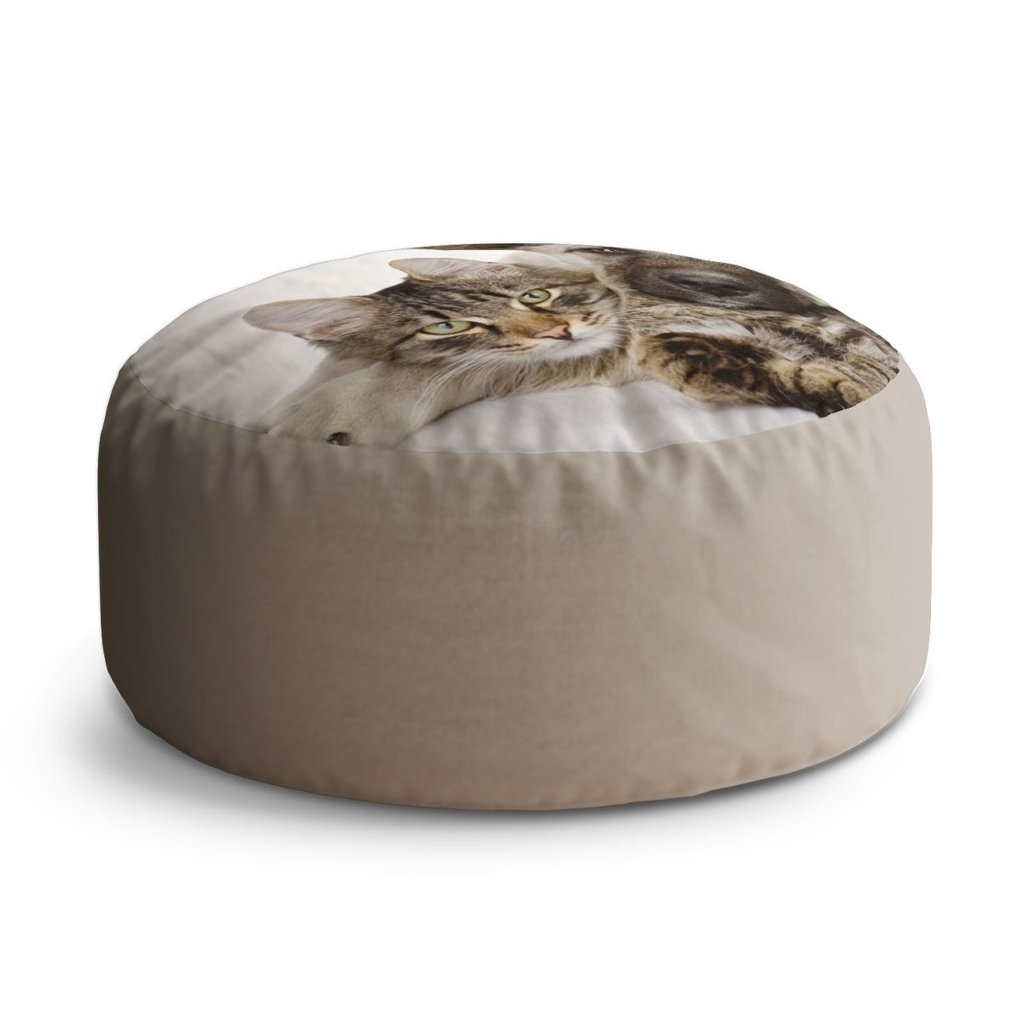 Taburet Circle kočička a štěňátko, béžová