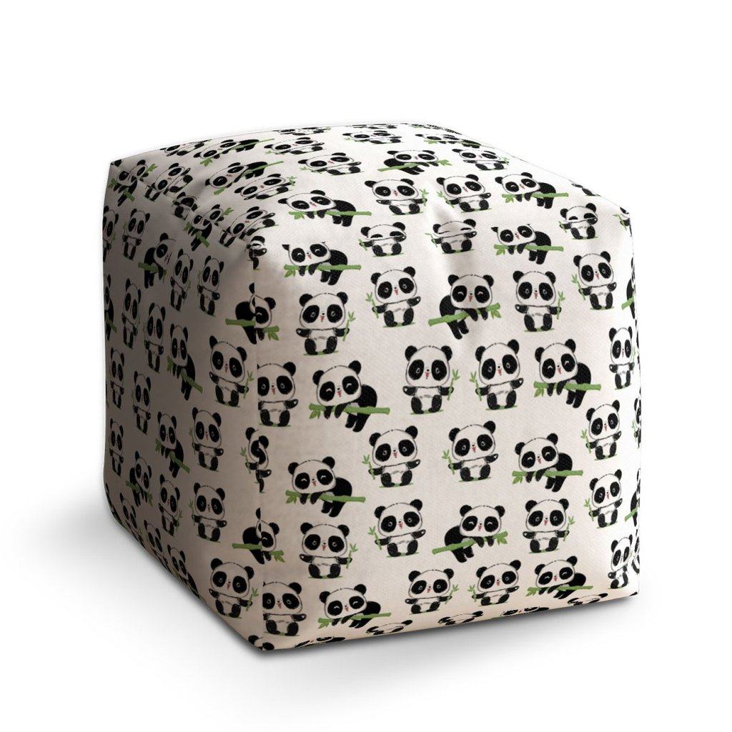 Taburet Cube pandy s větvičkou, bílá / černá
