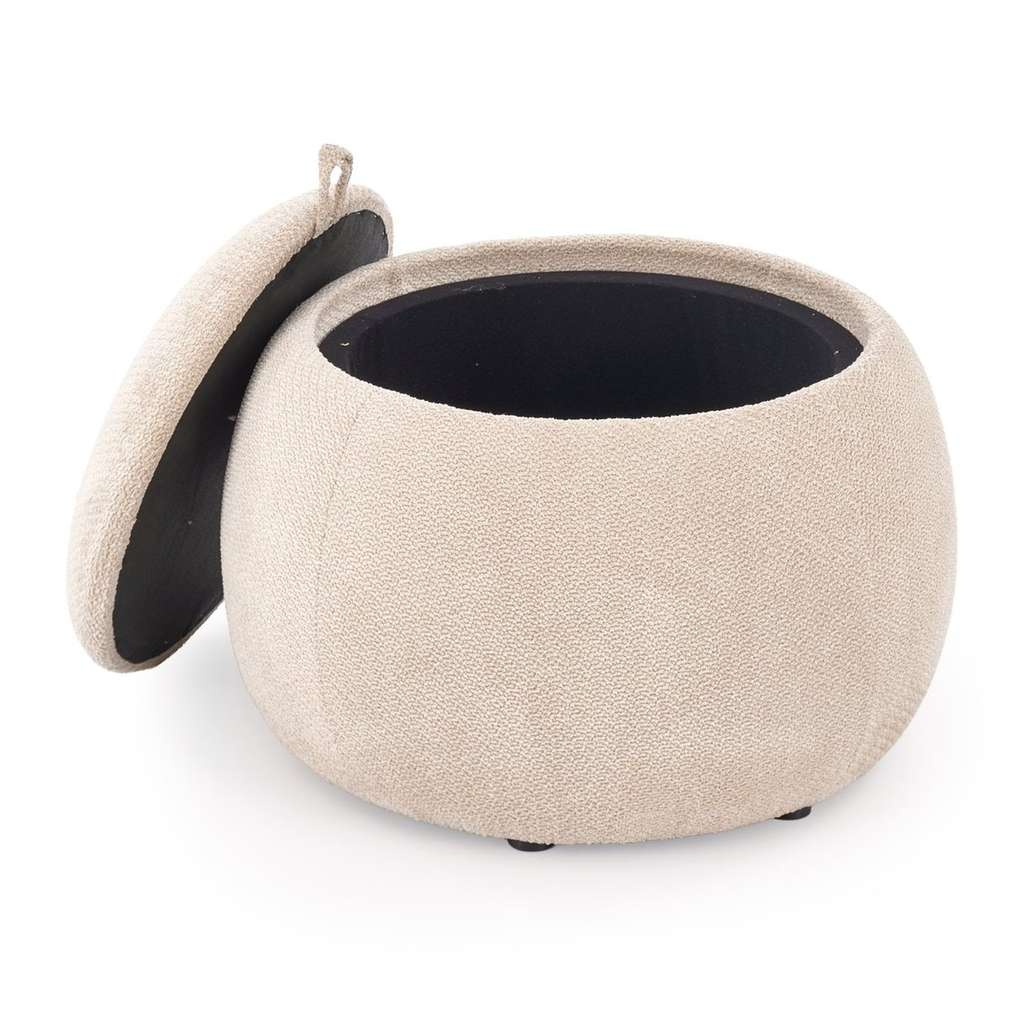 Potah z příjemné látky dodává taburetu pohodlný a měkký povrch, který je zároveň odolný a snadno udržovatelný. Úložný prostor uvnitř taburetu umožní uschovat různé drobnosti, které chcete mít po ruce, ale zároveň je diskrétně schovat.