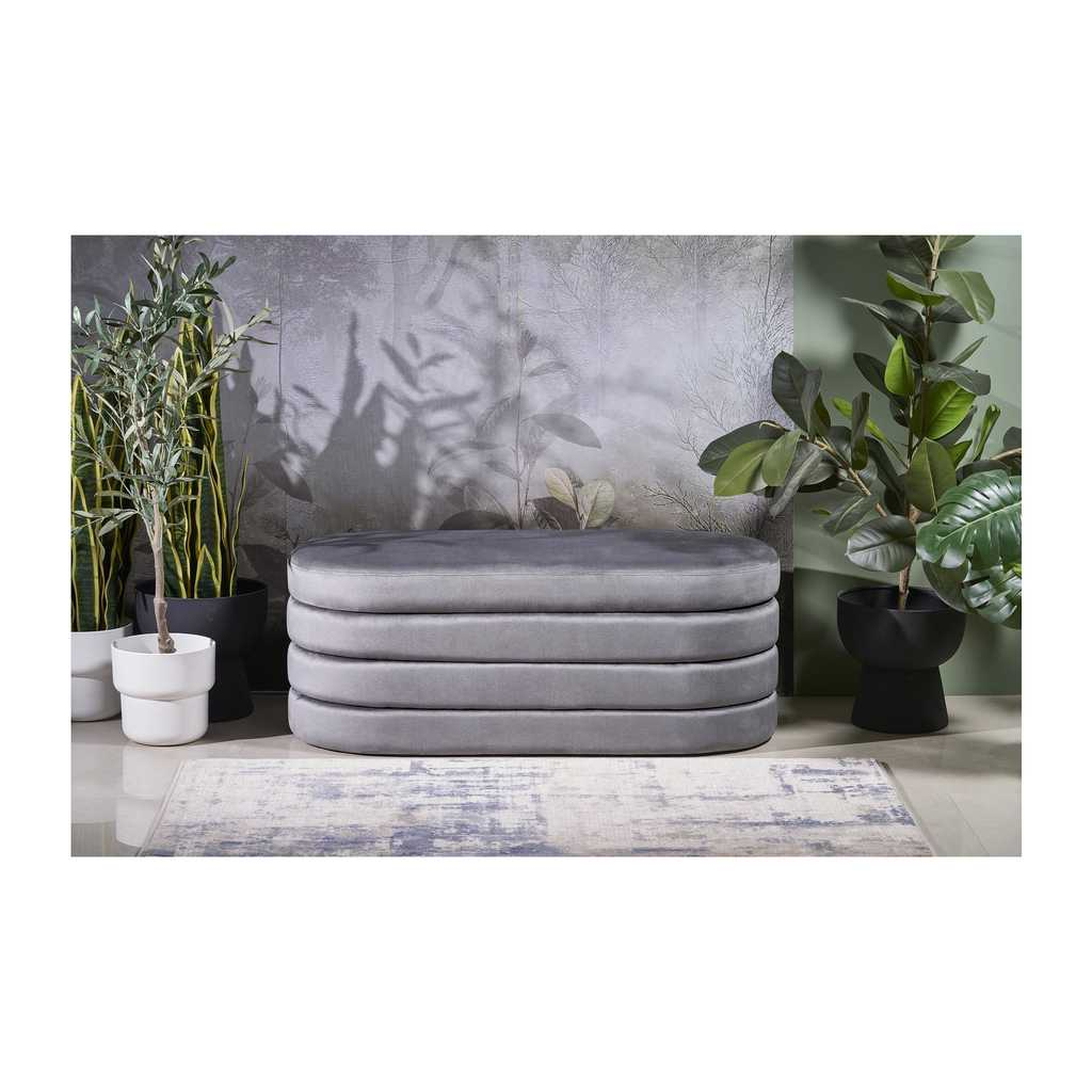 Taburet Terrell je elegantní a praktický doplněk do vašeho interiéru, který spojuje komfort se skladovatelností. Díky svému sametovému látkovému potahu nabízí příjemný a měkký povrch pro pohodlné sezení. Tento taburet se vyznačuje příjemnou výškou sedu, která je ideální pro odpočinek nebo jako doplněk k sedací soupravě.