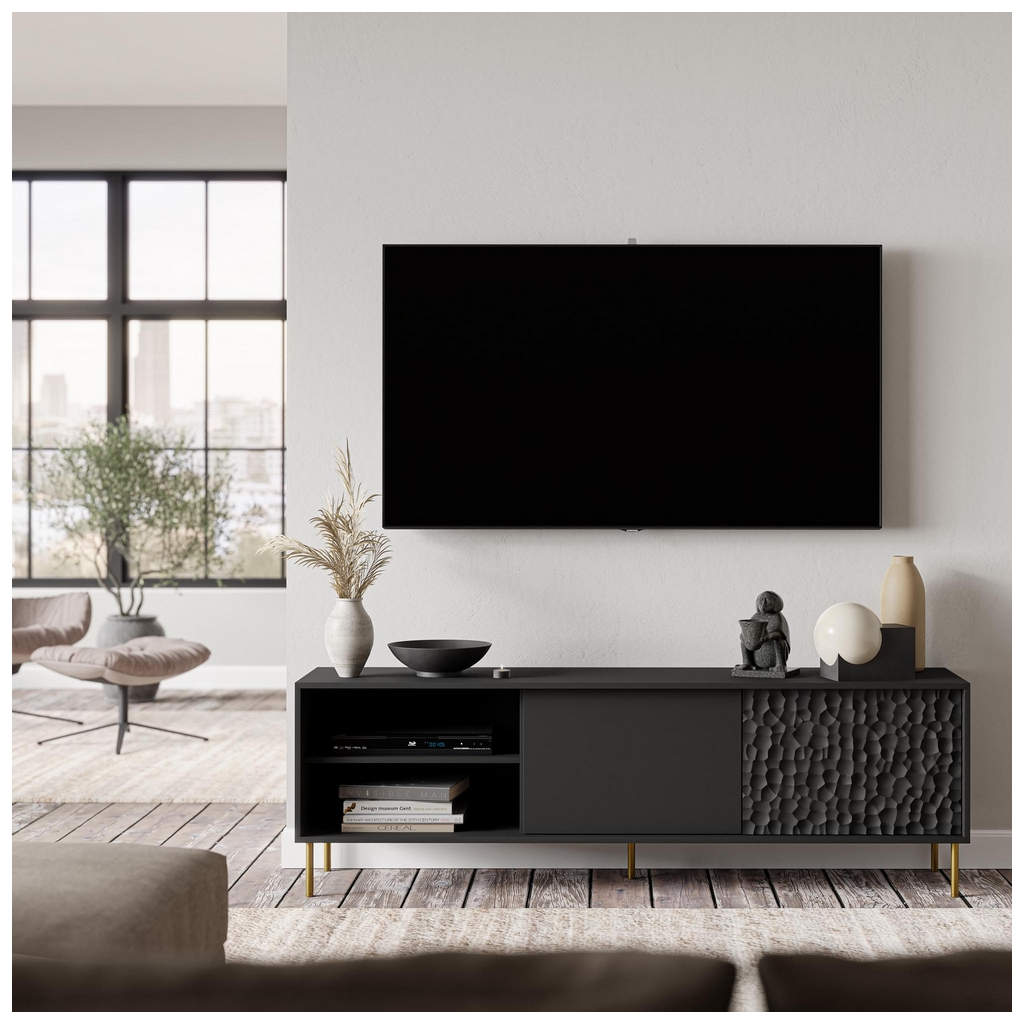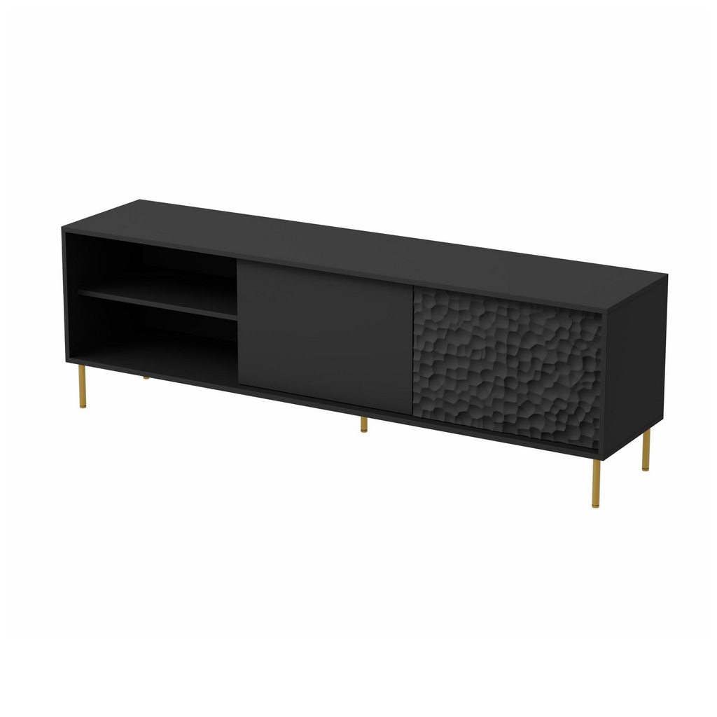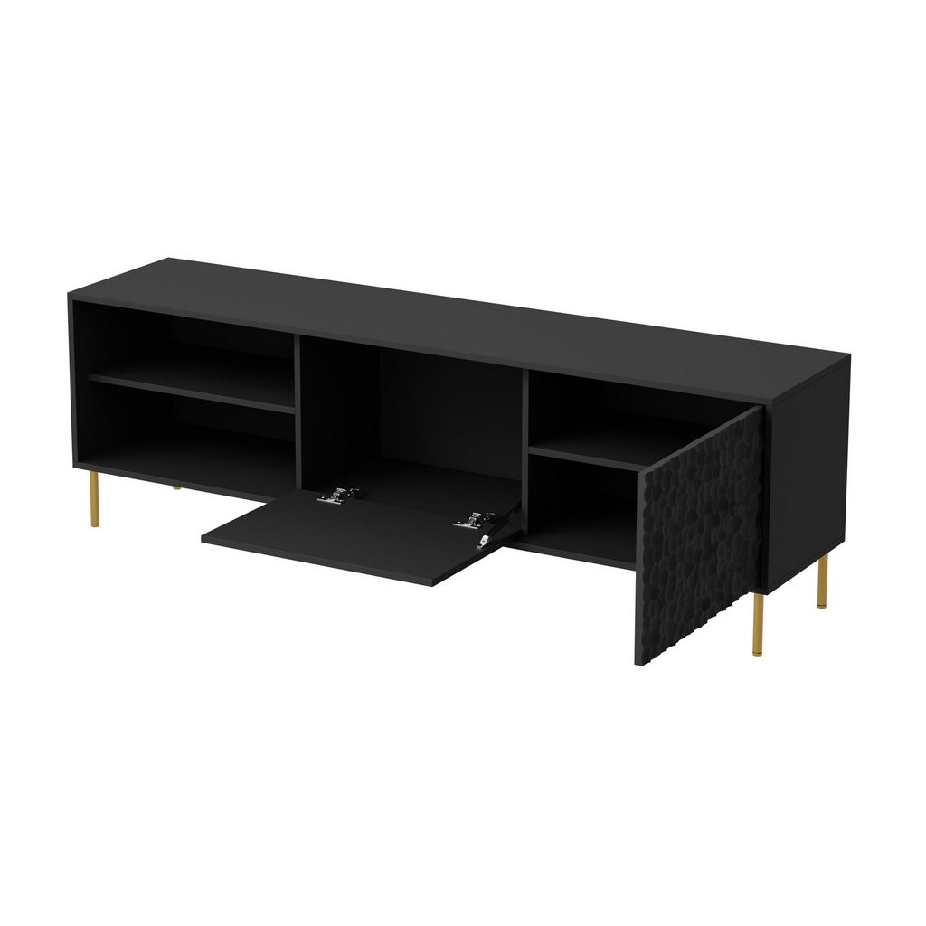 Stolek má 3 úložné oddíly. Levý a pravý jsou rozdělené policí a vhodné např. k uložení sbírky DVD, prostřední sekce je pak otevřená – sem schováte např. příslušenství k televizi. Je jen na vás, zda dvířka namontujete do levé, nebo pravé části.