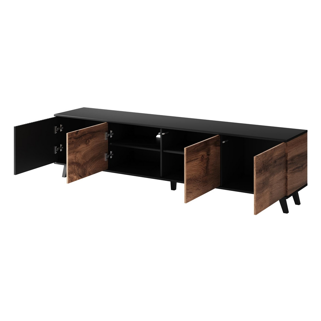 Stolek nabízí úložný prostor v podobě 4 skříněk s křídlovými dveřmi. V prostřední části najdete v zadní stěně otvor k protažení kabeláže, takže je tento oddíl ideální k umístění multimediálních přehrávačů, herních konzolí a podobného příslušenství.