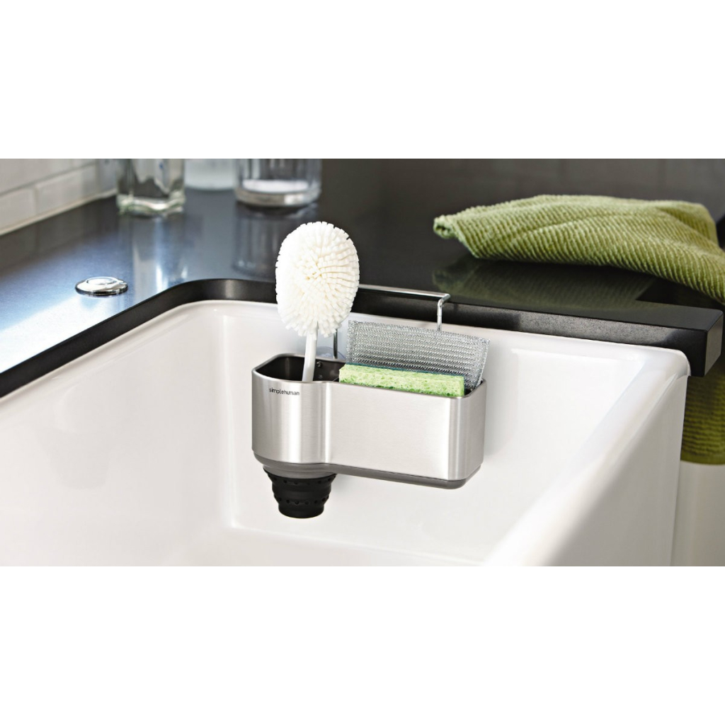 Jednou provždy zabraňte tomu, aby houbička na mytí nádobí padala do dřezu. S tímto praktickým držákem bude houbička bezpečně uložena. Bude snadno schnout, nebude nikam padat a nebude se nikde zbytečně plést. Jedinečný doplněk každé moderní kuchyně a spolehlivý výrobek společnosti Simplehuman.