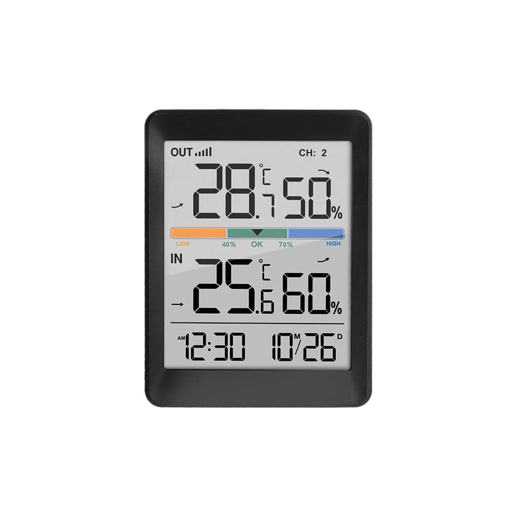 Teploměr a vlhkoměr TE45 je praktické zařízení určené pro přesné sledování teploty a vlhkosti jak uvnitř, tak i venku. Díky rozsahu měření venkovní teploty od -40 °C do 70 °C je vhodný i do náročnějších klimatických podmínek. Disponuje bezdrátovým senzorem s dosahem až 60 metrů, který umožňuje pohodlné umístění v exteriéru bez nutnosti složité instalace.