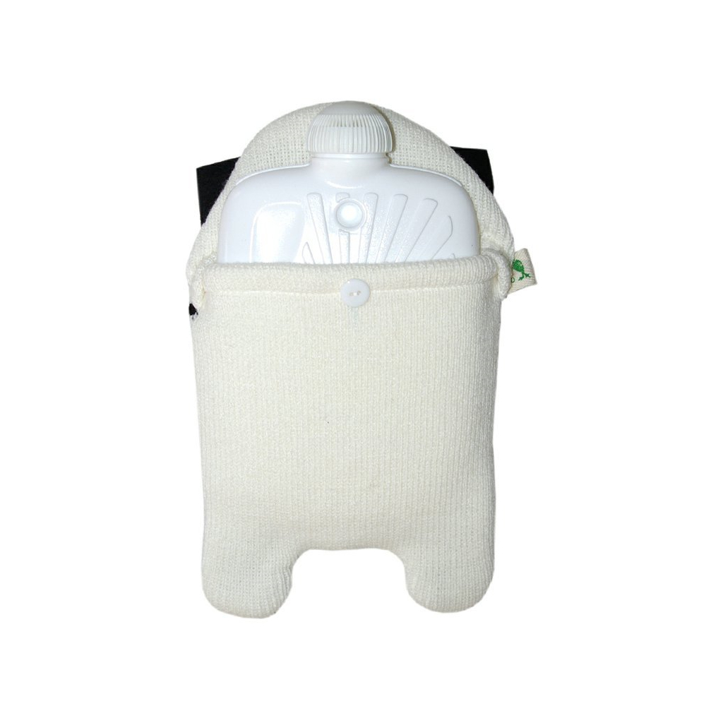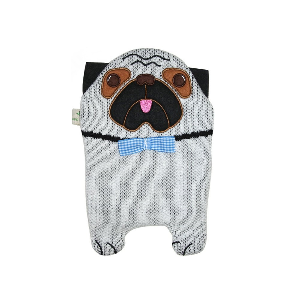 Je potažený měkkým látkovým obalem v podobě mopsíka, který dobře drží teplo. Potah je odnímatelný a pratelný na 30°C v pračce.
