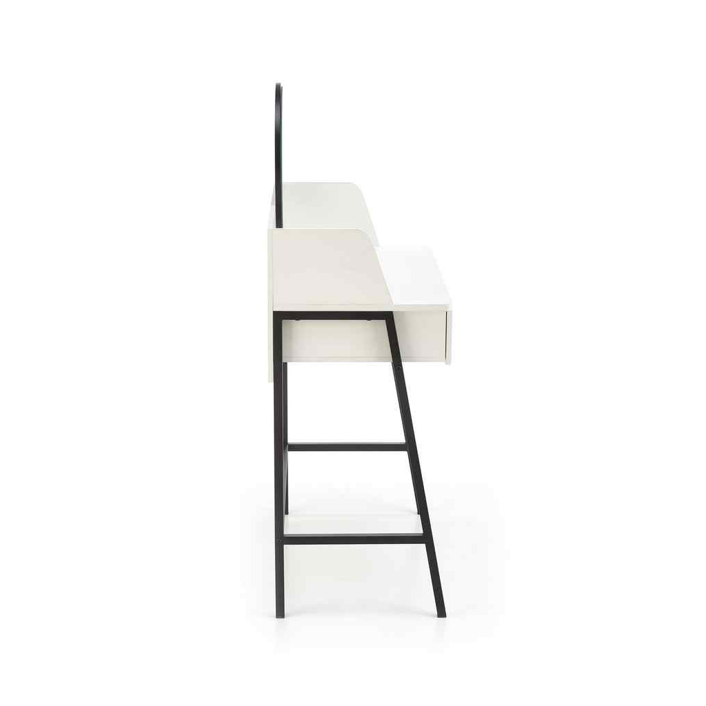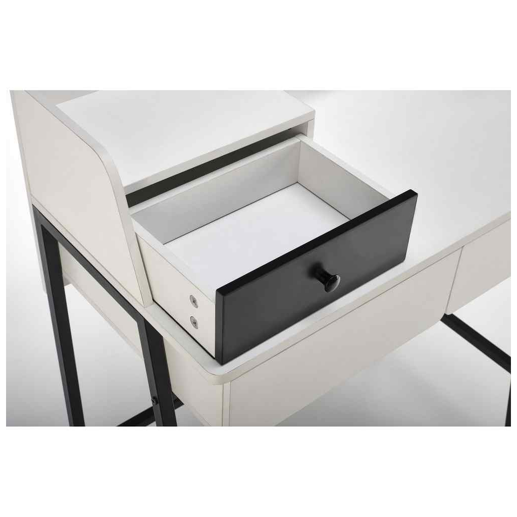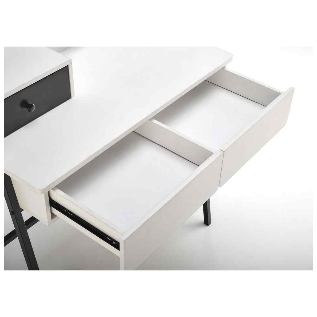 Ocelové nohy nesou desky stolu z dýhovaných nábytkových desek. Spolu tvoří kontrastní celek, který zapadne zejména do moderních ložnicí či hotelových pokojů.