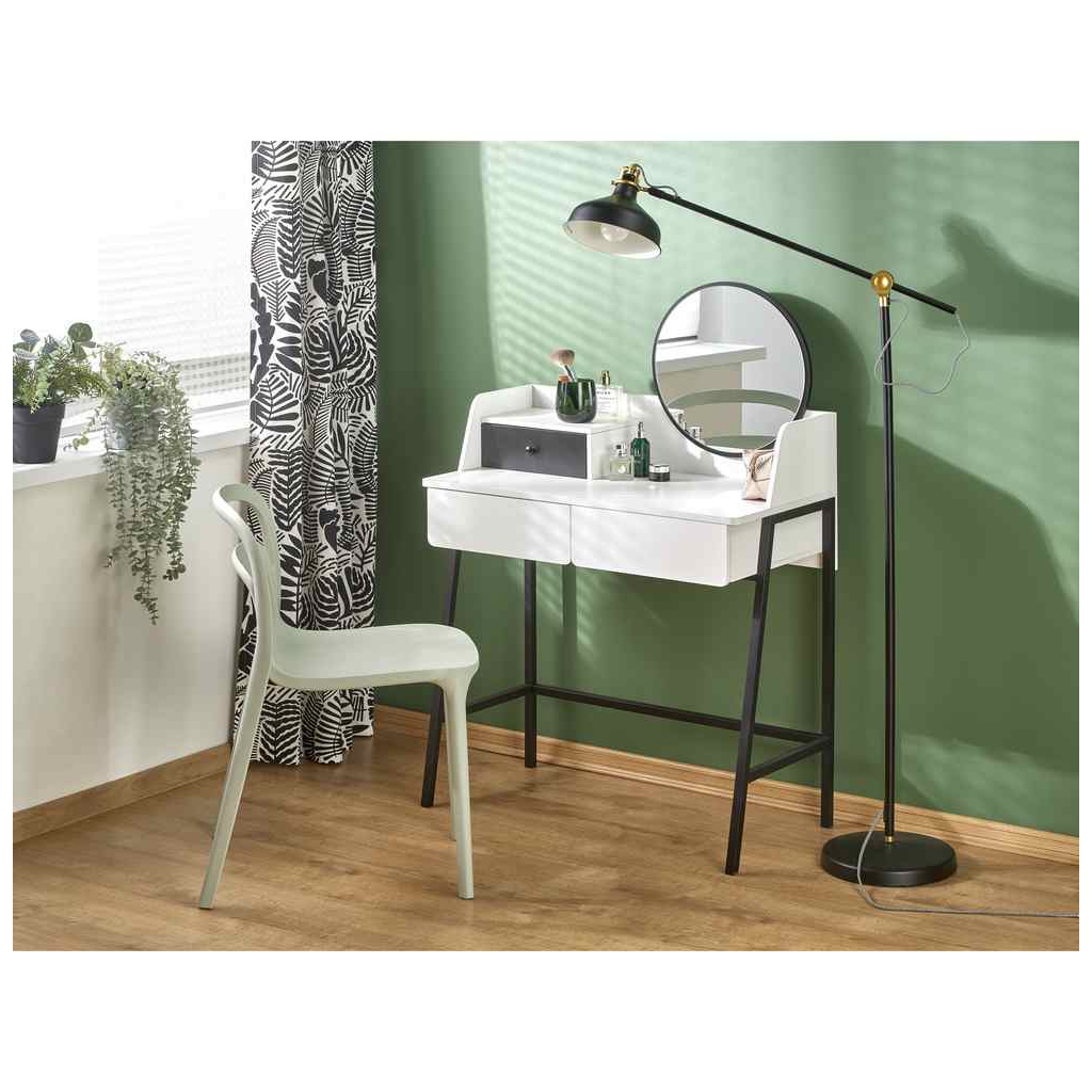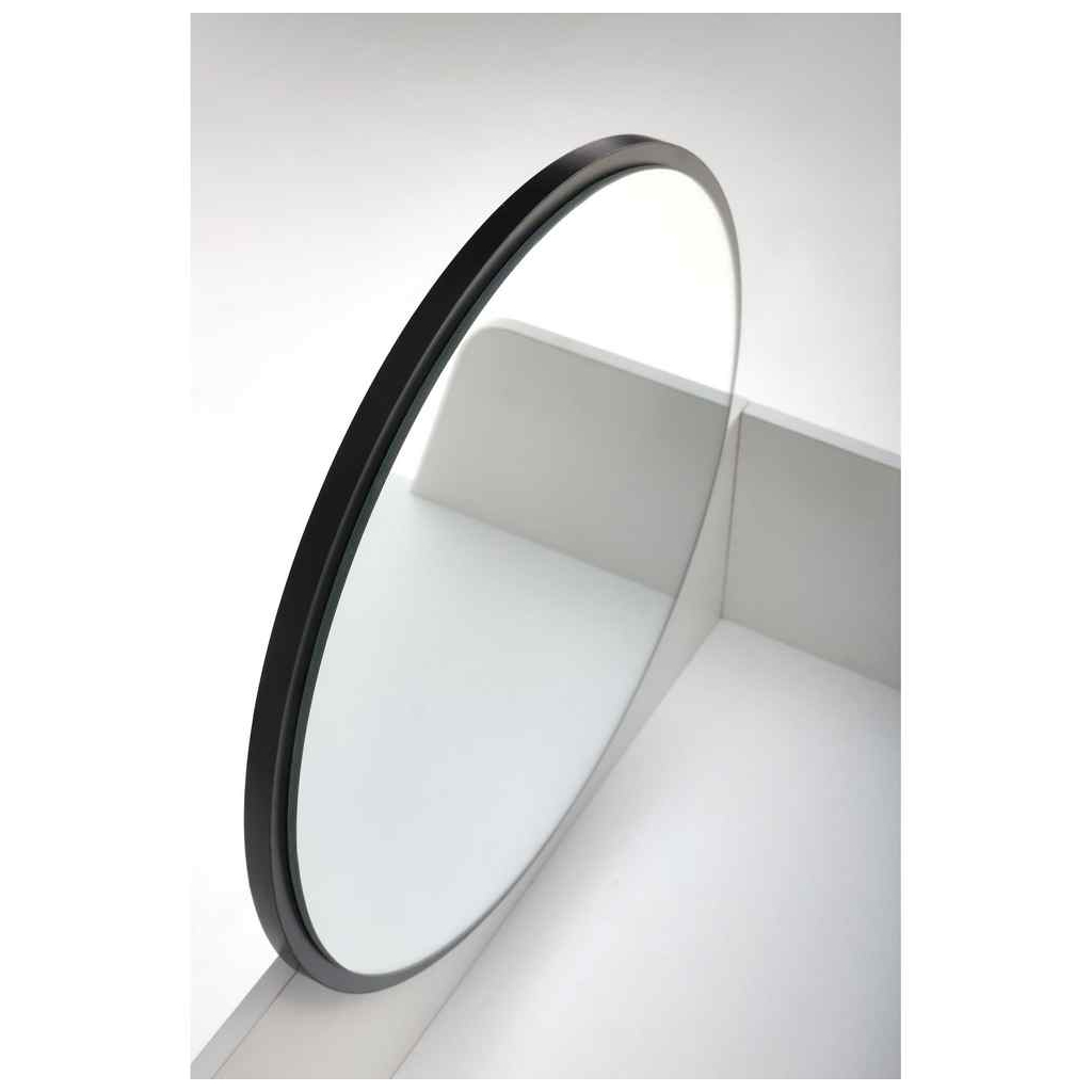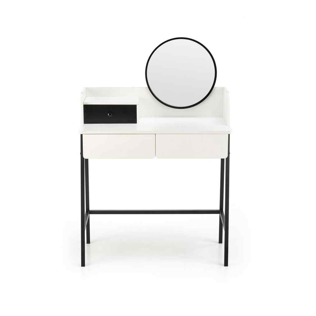 3 šuplíky. Stolek doplňuje kulaté zrcadlo.
