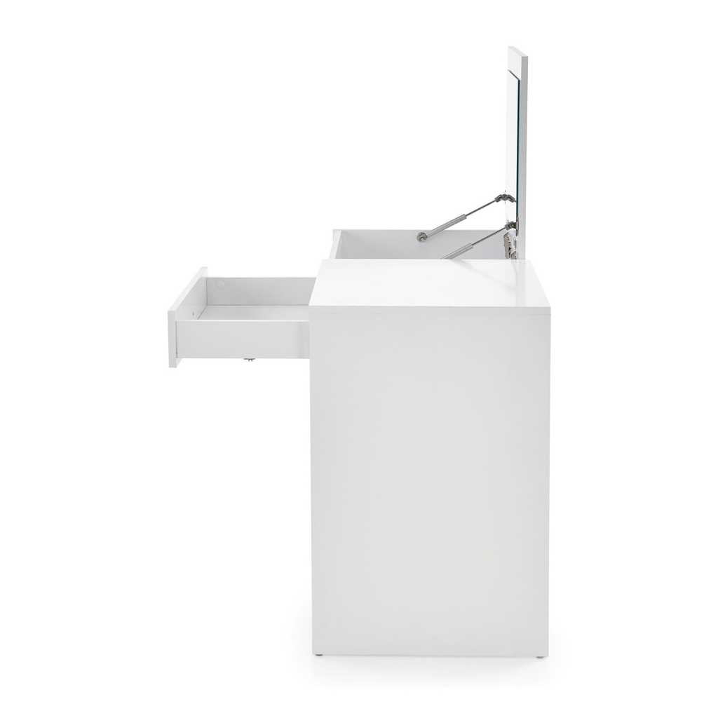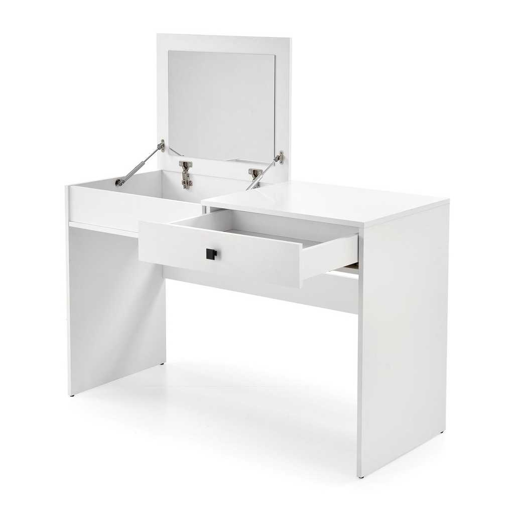 Toaletní stolek Bexley je praktický a elegantní kus nábytku, který kombinuje funkčnost s jednoduchým designem. Je vyroben ze dřeva, což zaručuje pevnost a stabilitu. Stolek nabízí dostatek prostoru pro vaše kosmetické potřeby díky jednomu prostornému zásuvkovému úložnému prostoru a skrytému prostoru pod zrcadlem, který se snadno otevírá.