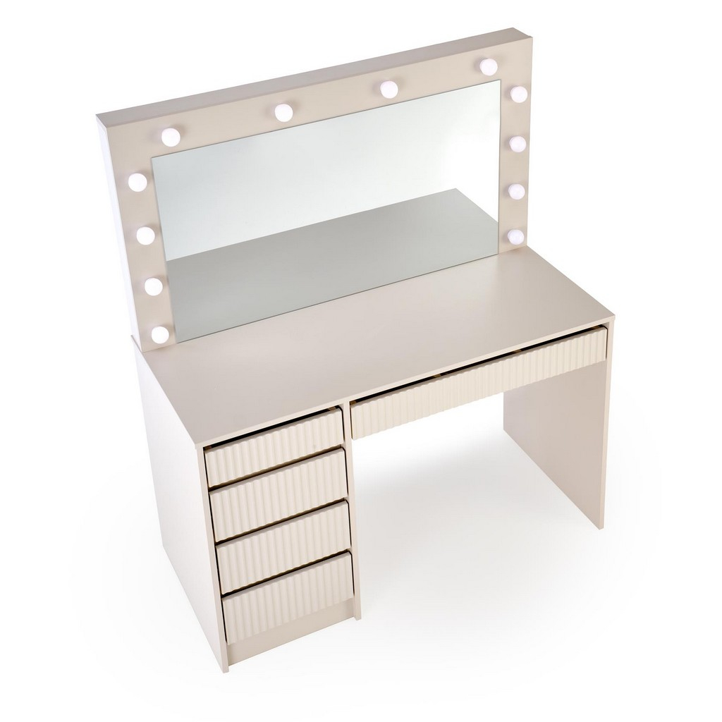 Při aplikaci make-upu nebo ladění účesu oceníte také velké zrcadlo lemované LED světly v retro designu. Ovládají se vypínačem na pravé straně.