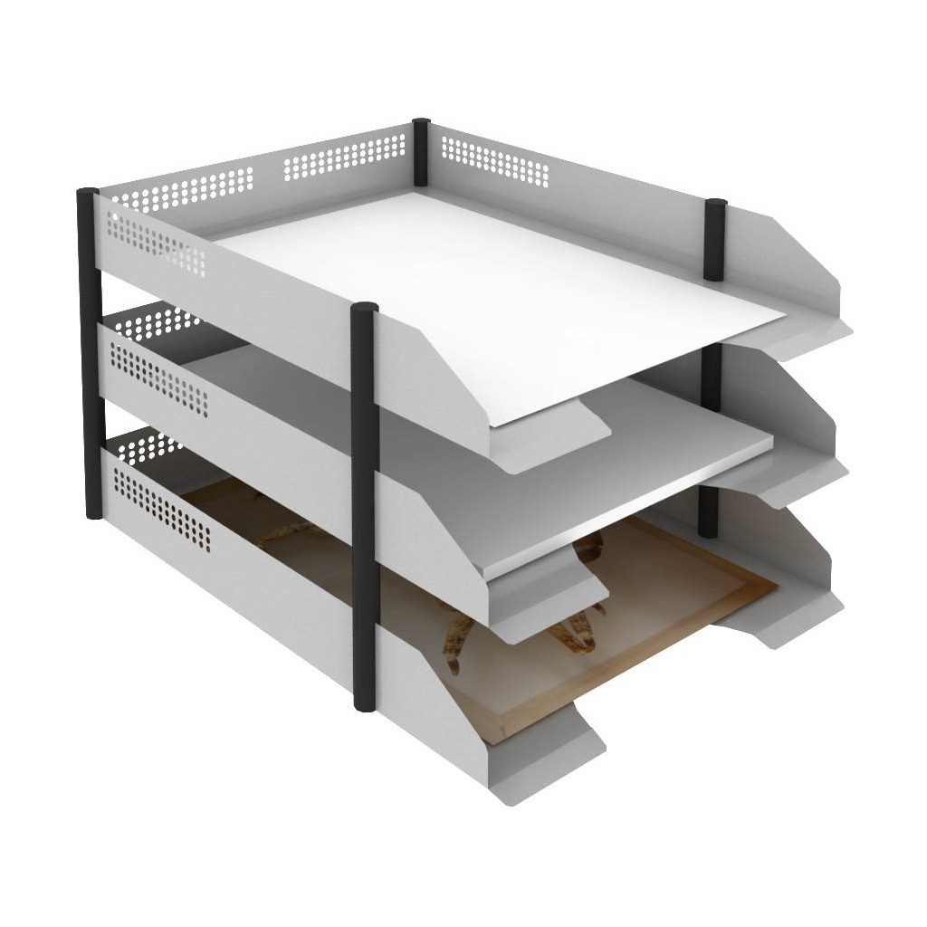 Trojbox na dokumenty ProOffice vám spolehlivě uspořádá pracovní plochu. Je vyroben z ocelového plechu tloušťky 0,8 mm a disponuje třemi přihrádkami, pomocí kterých si můžete dokumenty snadno roztřídit podle potřeby.