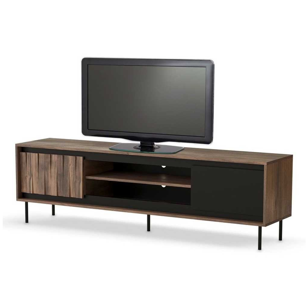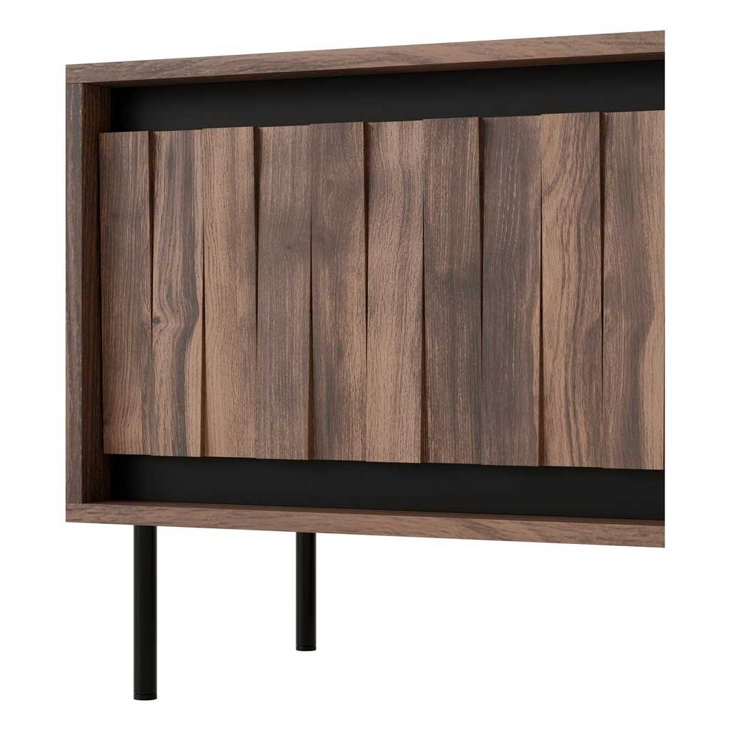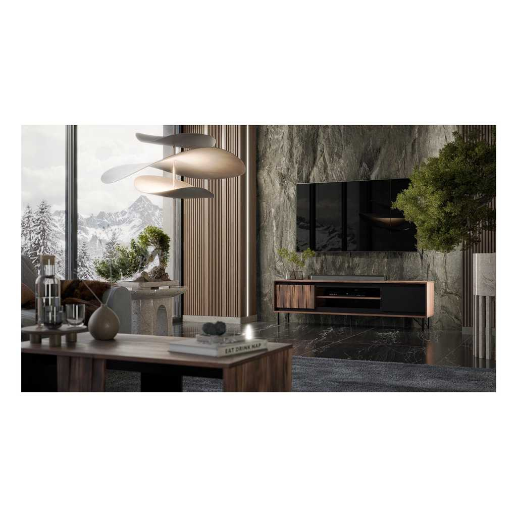 Televizní stolek Stuga je připravený na moderní sestavu s veškerým příslušenstvím. Mediální přehrávače nebo menší konzole uložíte do dvou přihrádek s kabelovými průchodkami, na všechno ostatní jsou tu postranní skříňky.