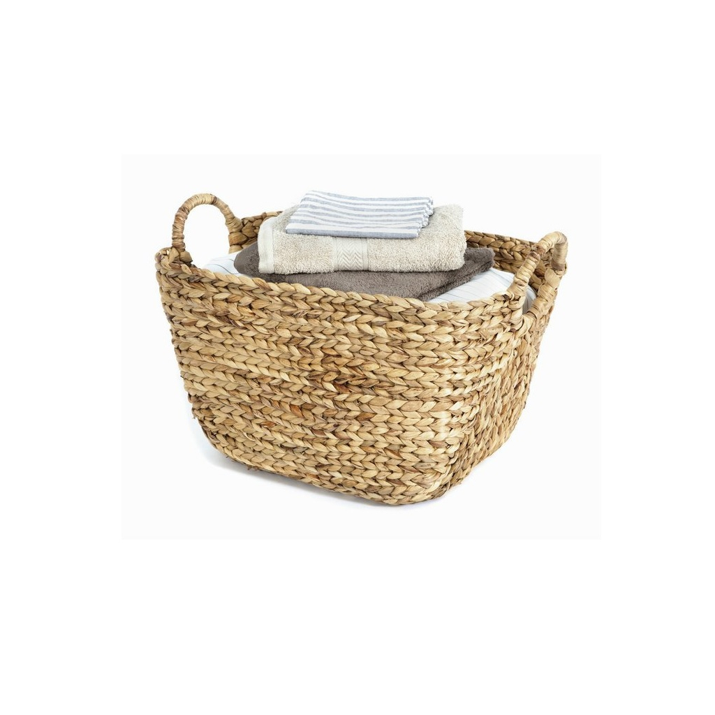 Ručně pletený košík je skvělým doplňkem a ozdobou do kanceláří i do domácností. Disponuje rozměry 52 × 34,5 × 35 cm a je vyroben z vodního hyacintu. Můžete tak do něj uložit téměř cokoliv.